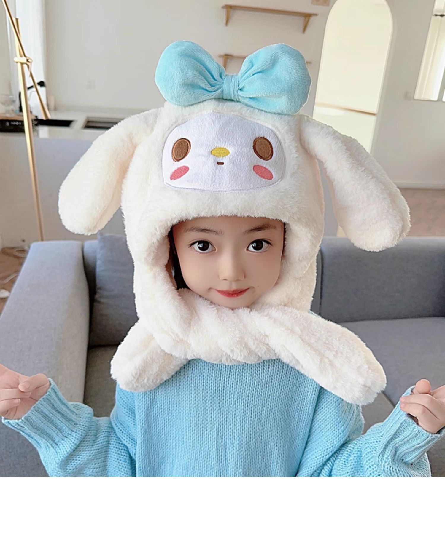 귀가 움직이는 어린이 모자, 틱톡 모자, 어린이용 두꺼운 봉제 모자, 남녀 아기 모자, 스카프, 올인원 모자, 겨울스토어 가기