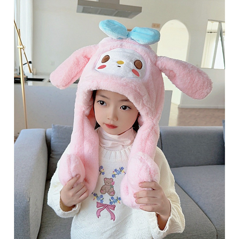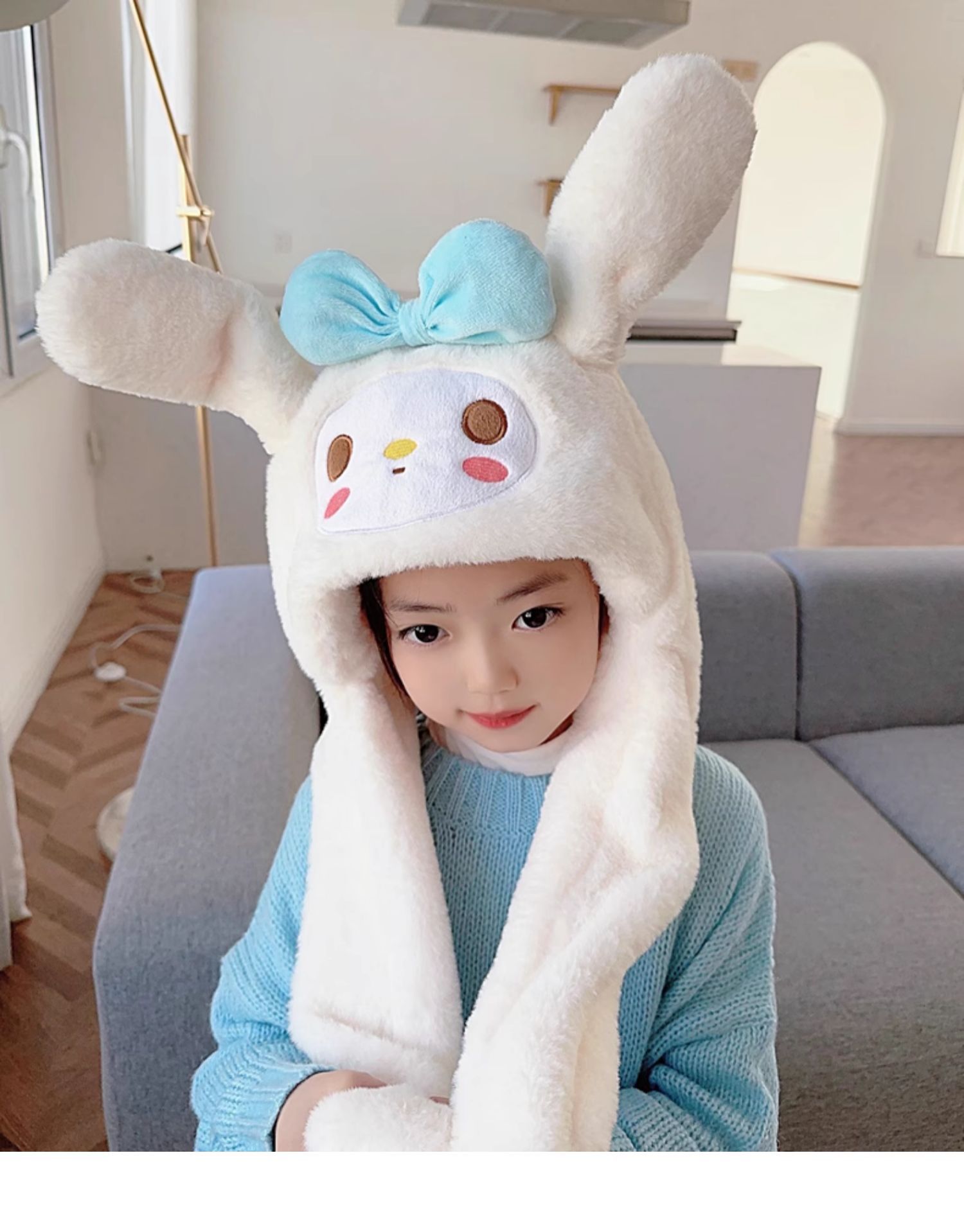 귀가 움직이는 어린이 모자, 틱톡 모자, 어린이용 두꺼운 봉제 모자, 남녀 아기 모자, 스카프, 올인원 모자, 겨울