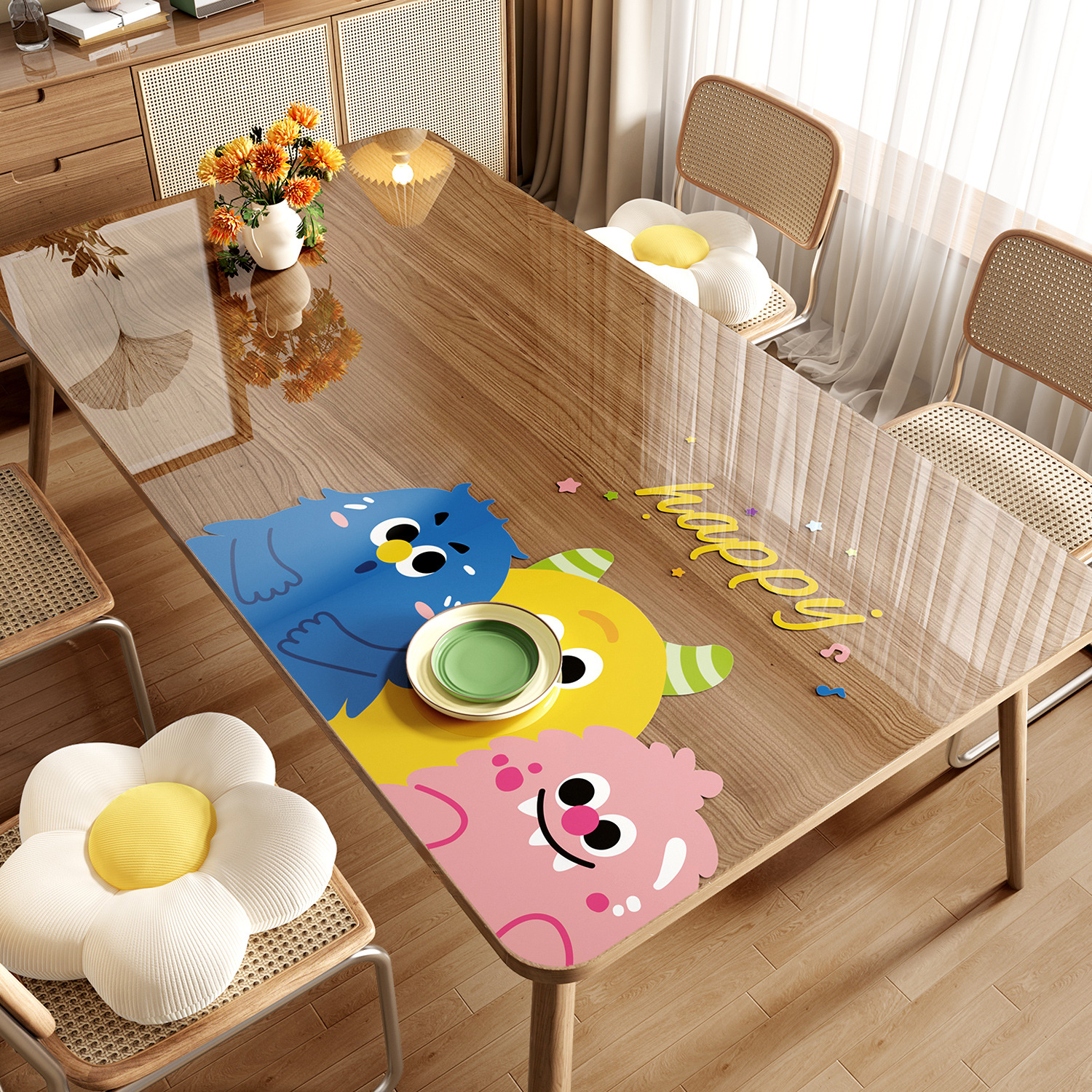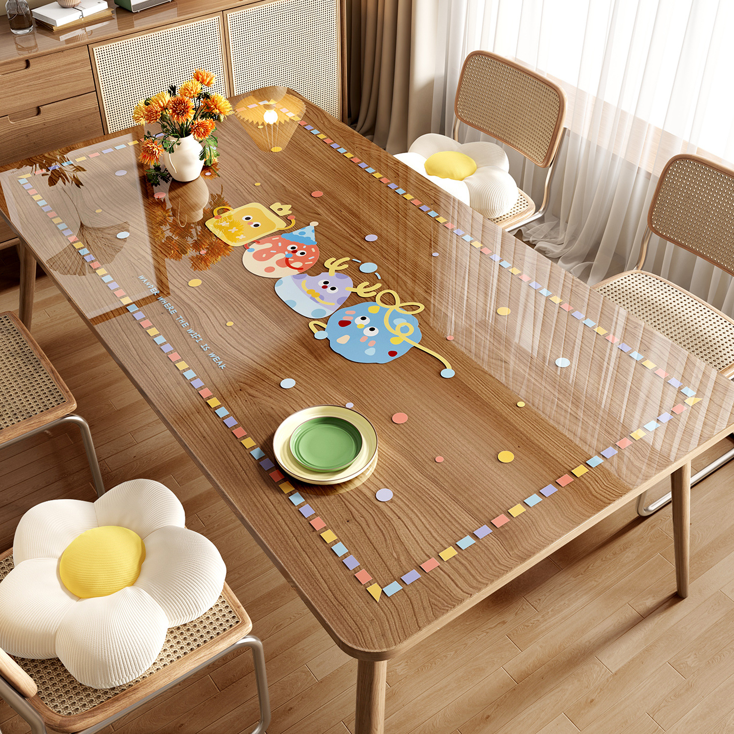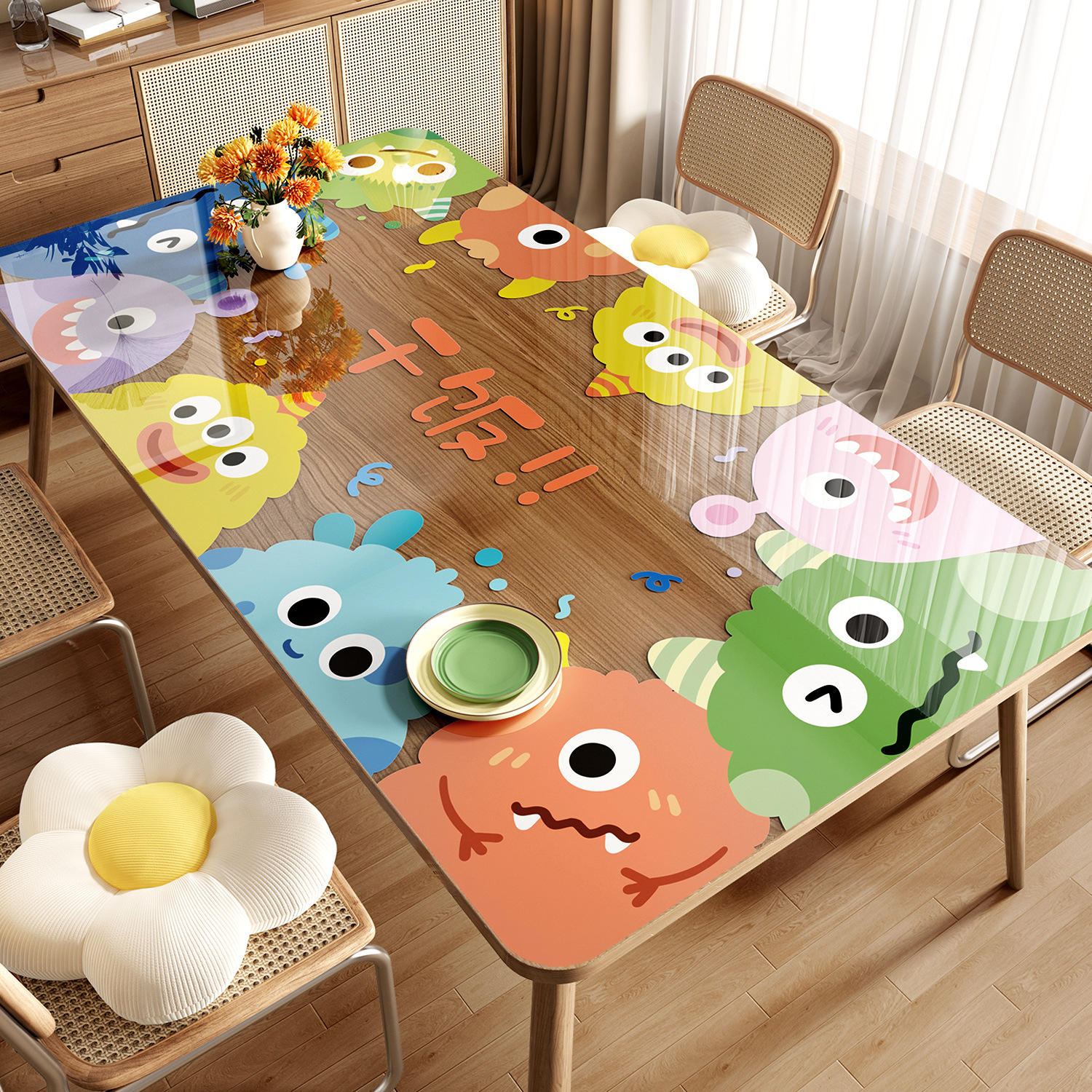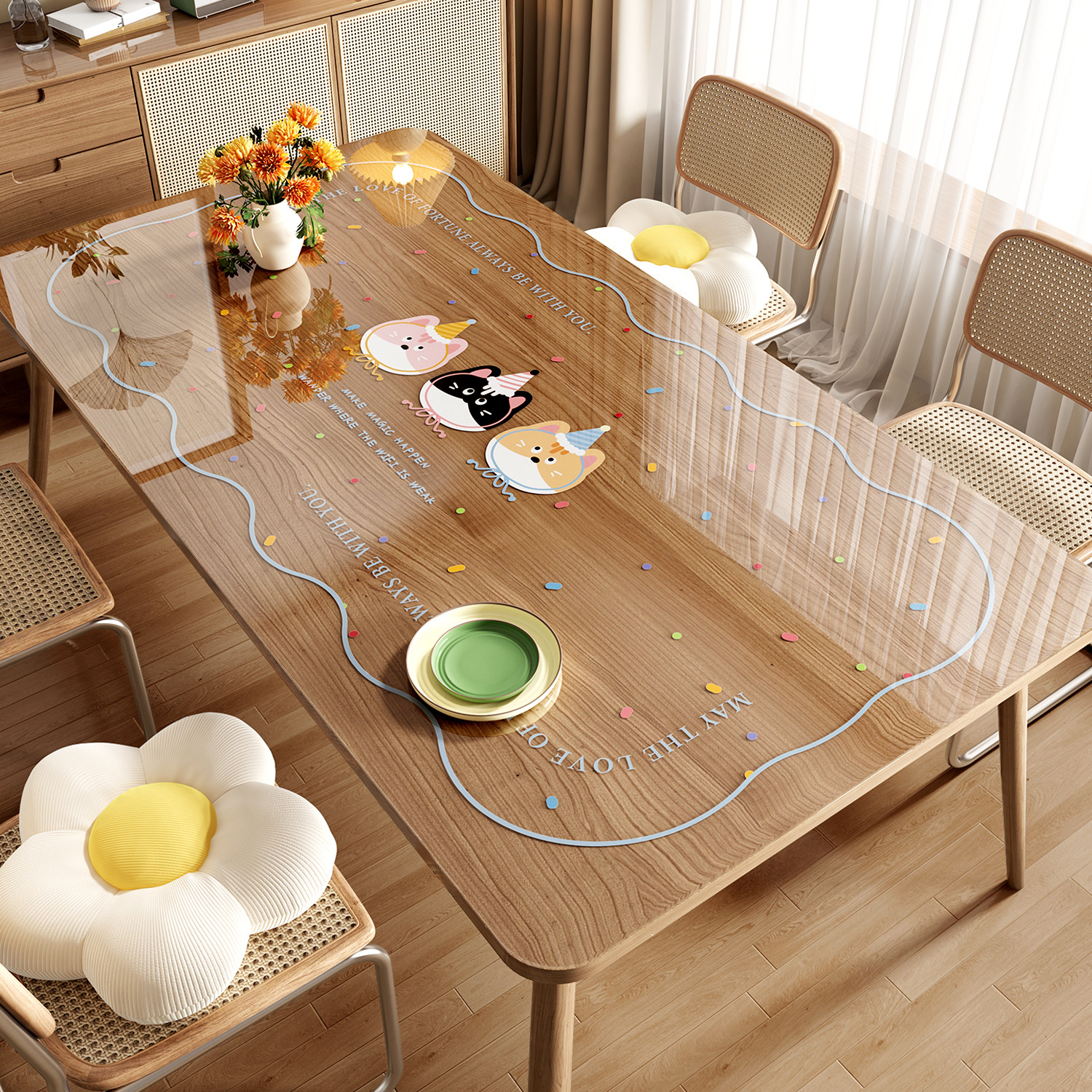 도파민 투명 테이블 매트 PVC 부드러운 유리 방수 방화 방지 비세척 식탁 만화 커피 테이블 식탁 매트