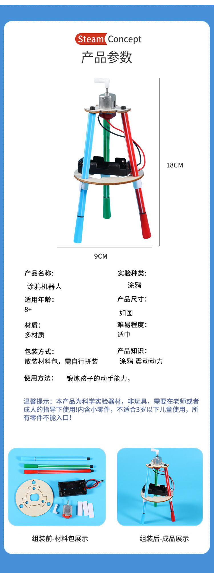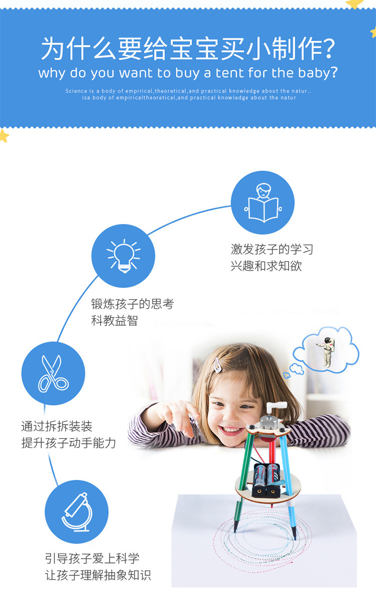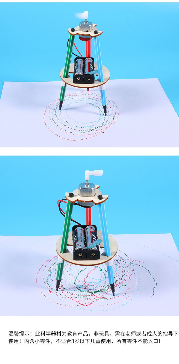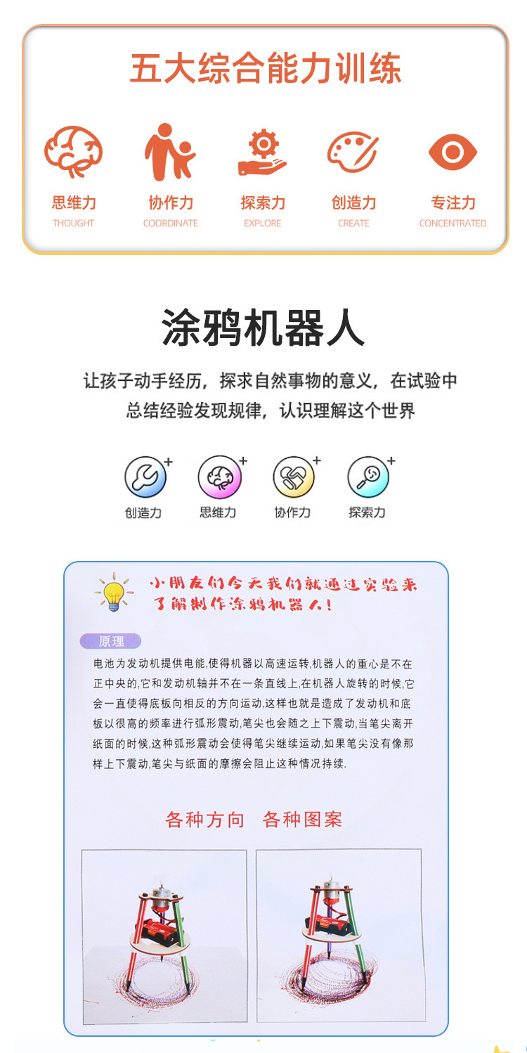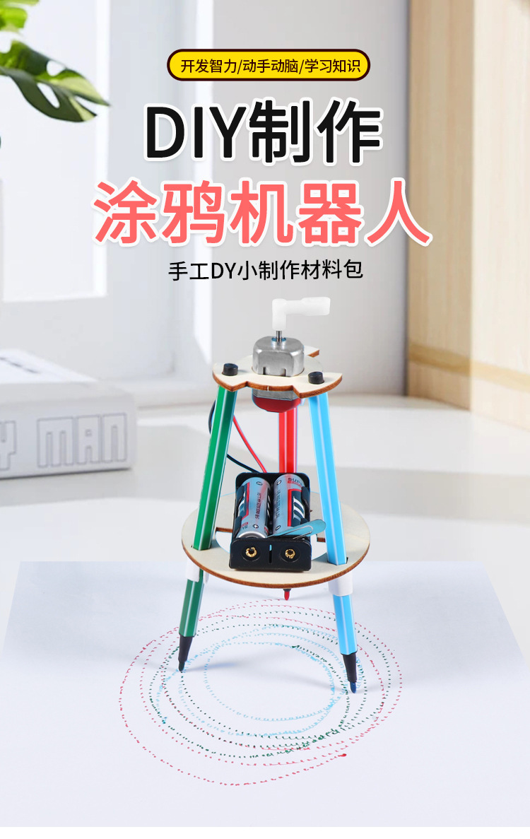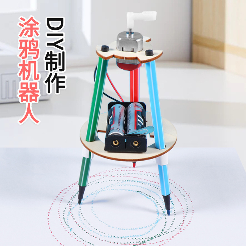 科学实验材料包涂鸦机器人儿童拼装木质涂鸦笔科技小制作科教玩具