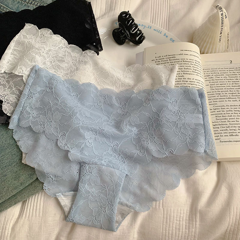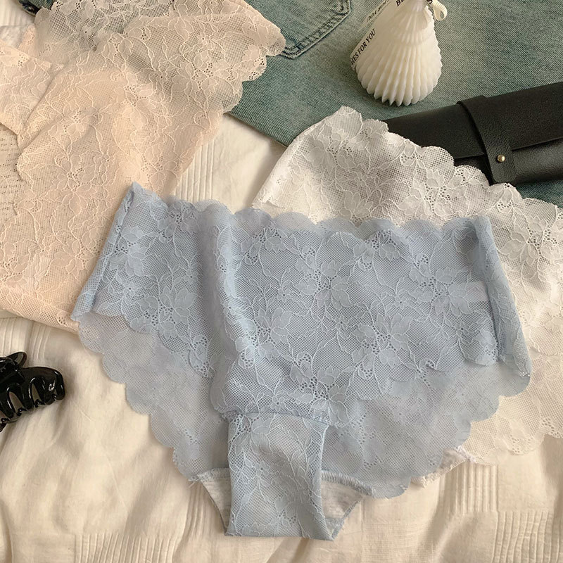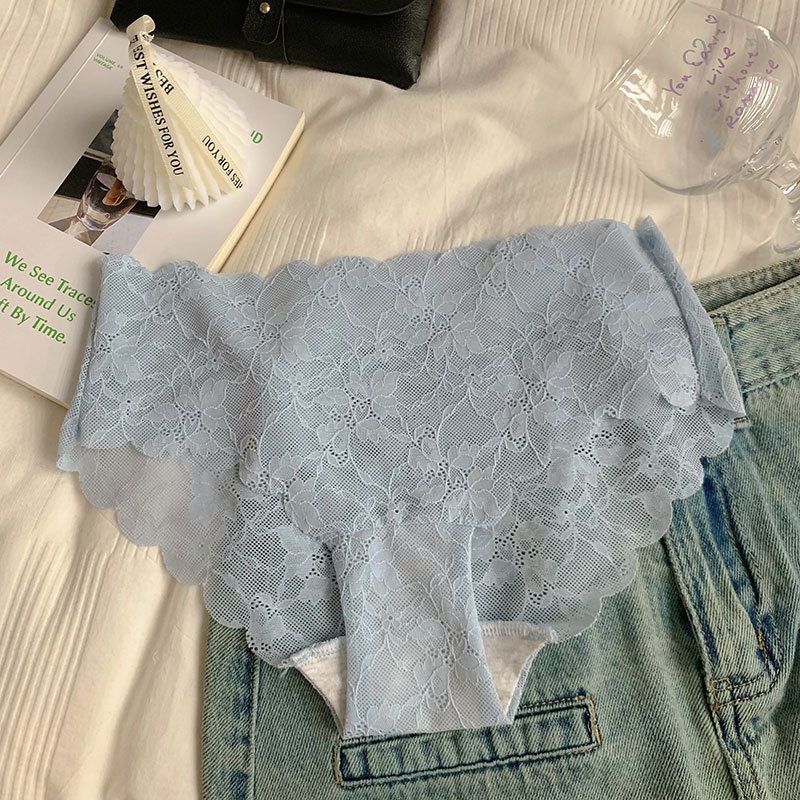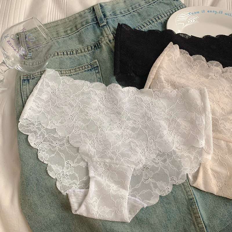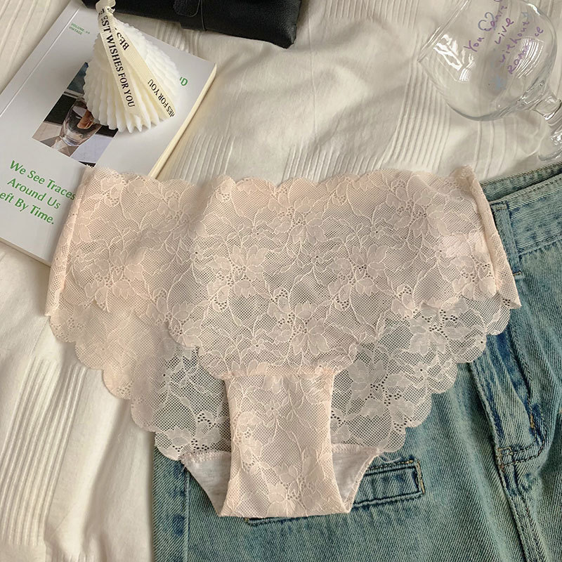 프랑스 스타일 추적없는 속옷 여성용 레이스 웨이브 엣지 알몸 센스 제로 바운드 통기성 섹시한 로맨틱 브리프 순수한 욕망 스타일스토어 가기