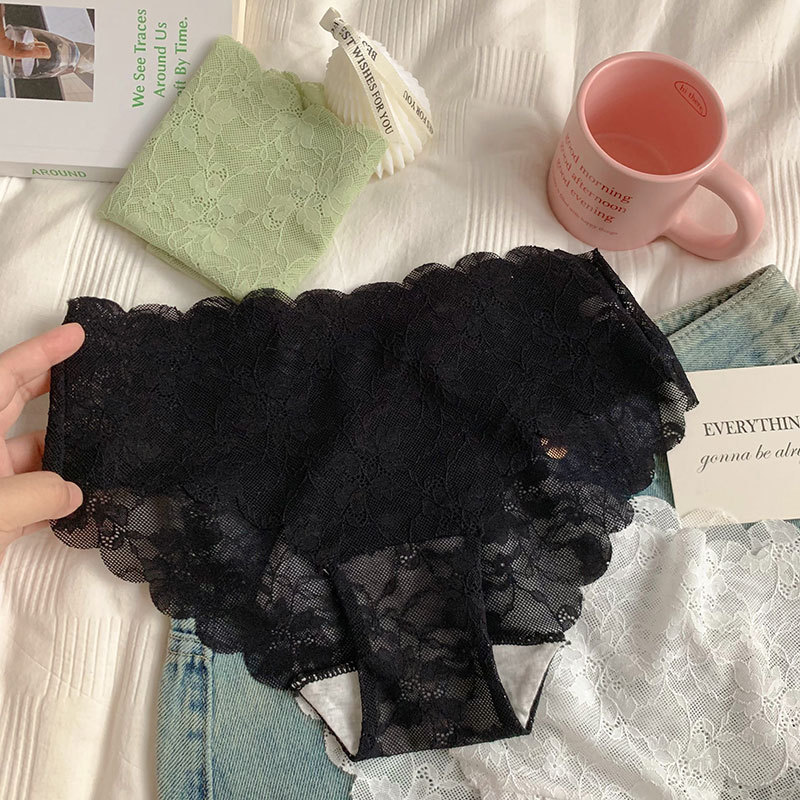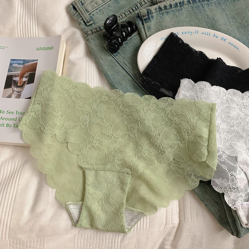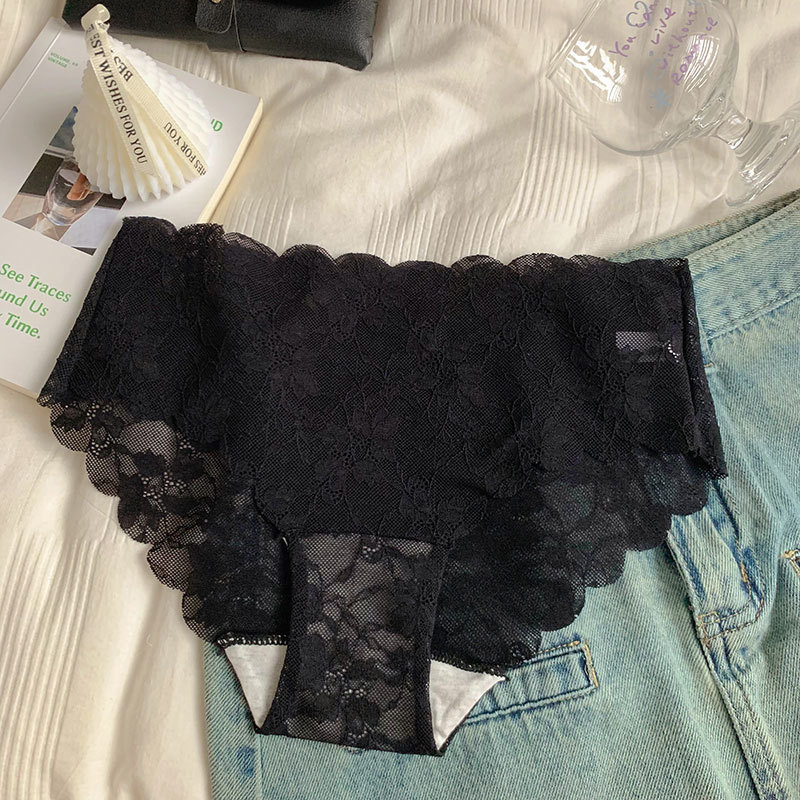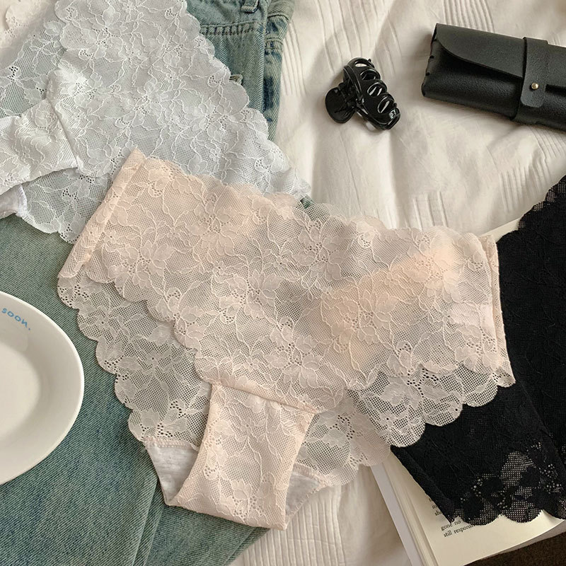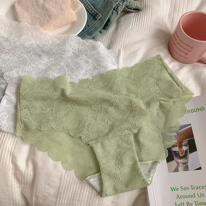 프랑스 스타일 추적없는 속옷 여성용 레이스 웨이브 엣지 알몸 센스 제로 바운드 통기성 섹시한 로맨틱 브리프 순수한 욕망 스타일스토어 가기
