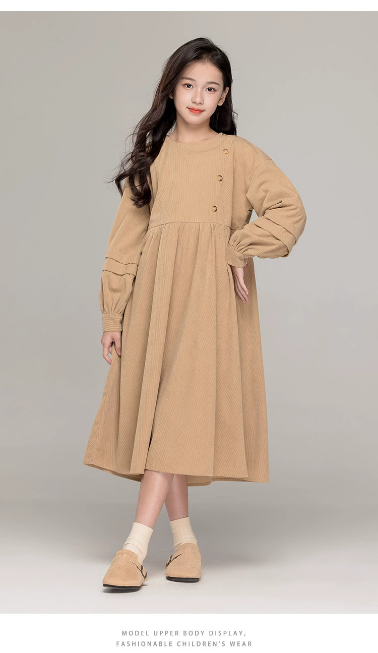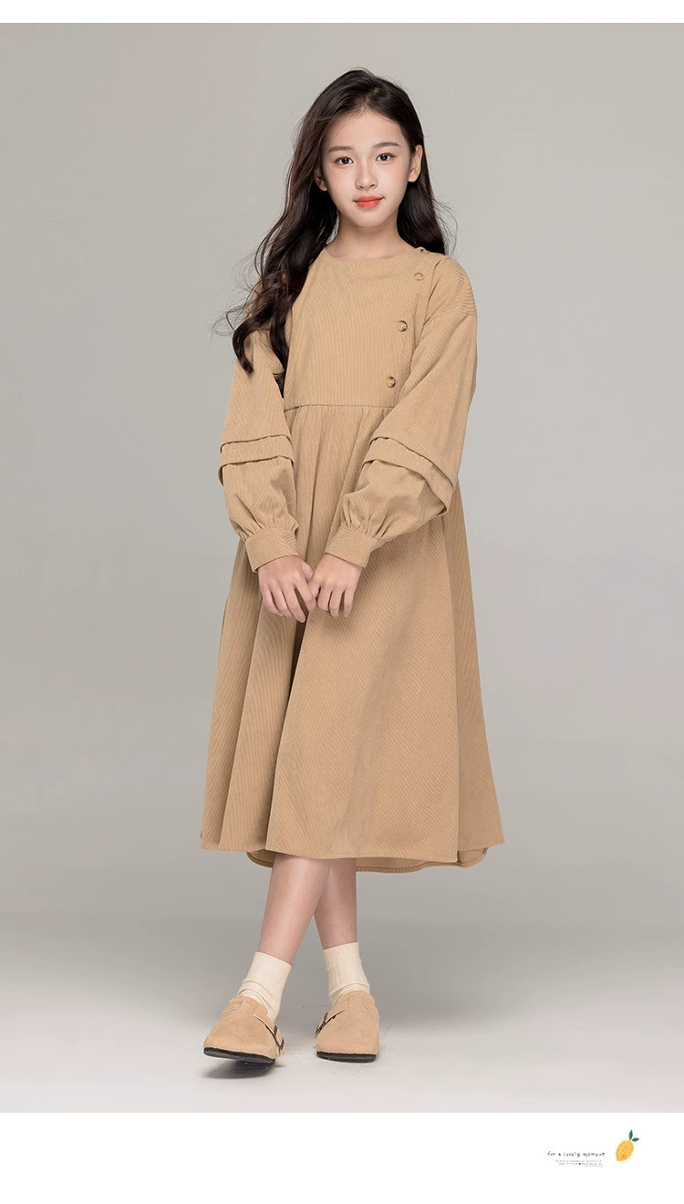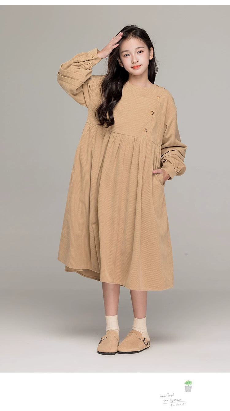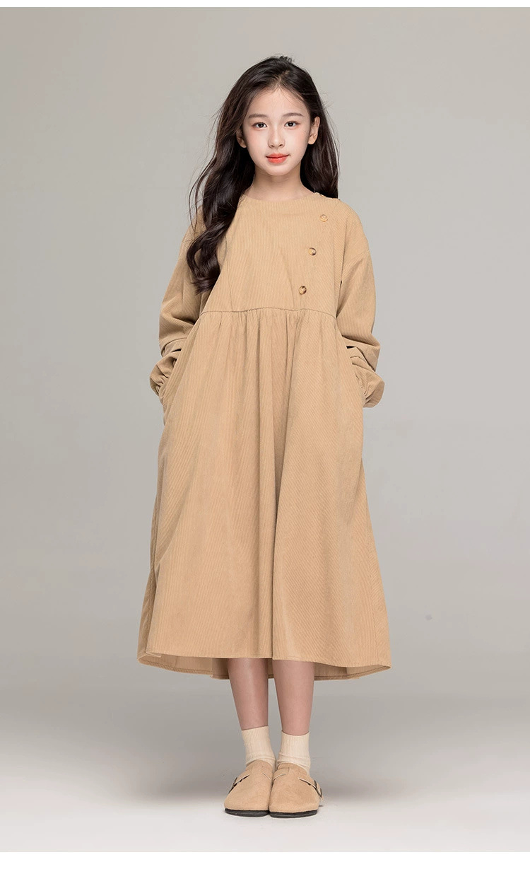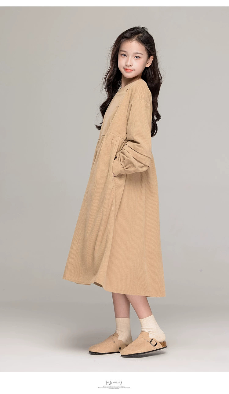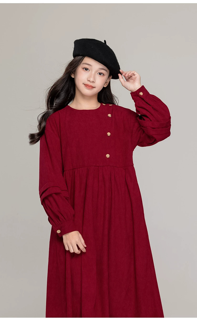 가을 겨울 새 기모 원피스 소녀 느슨한 중간 길이 원피스 큰 어린이 신년 옷 빨간 서양식 긴 원피스스토어 가기