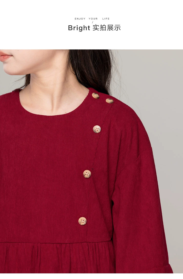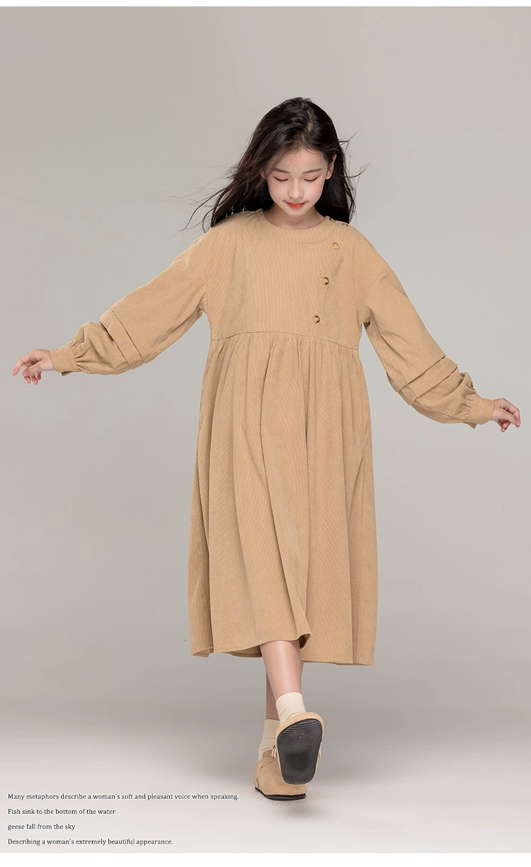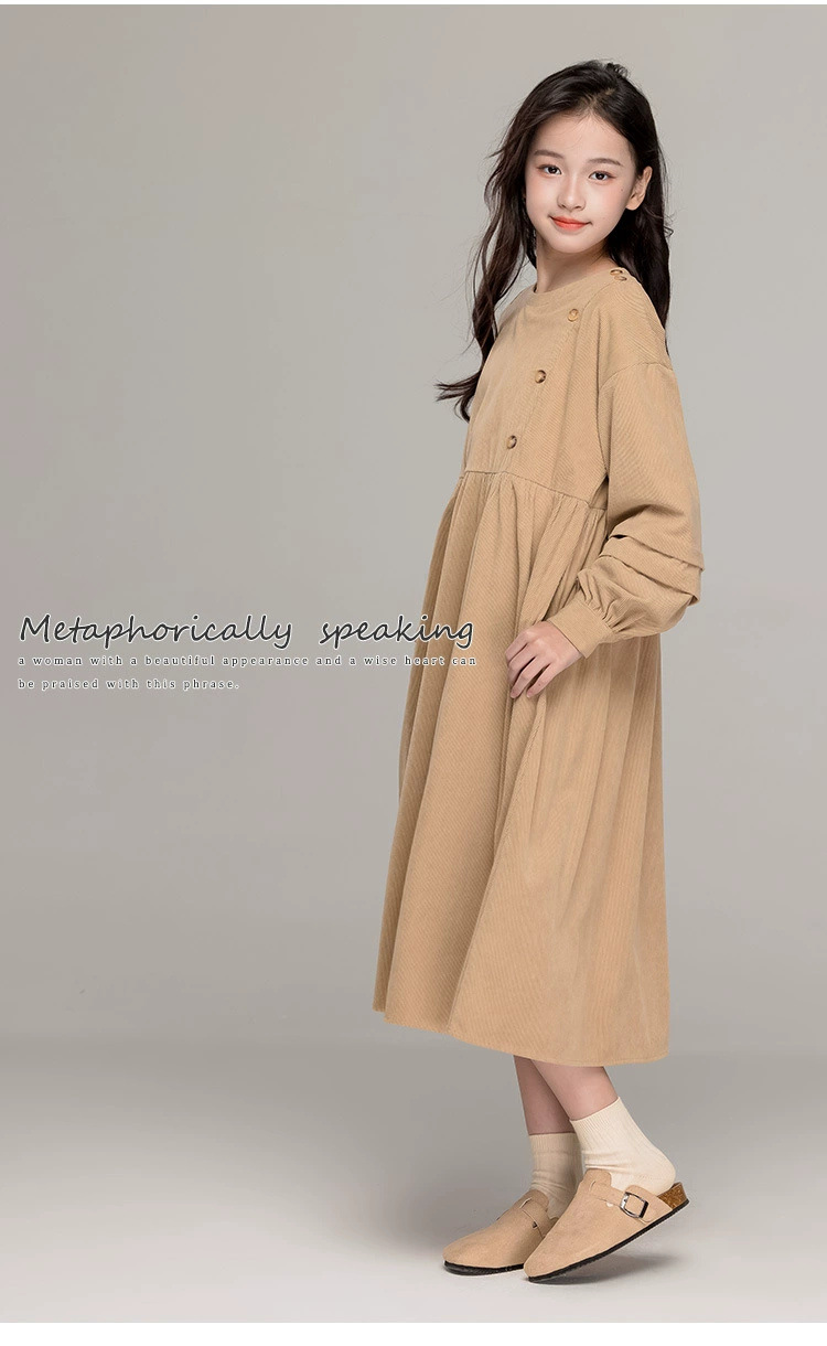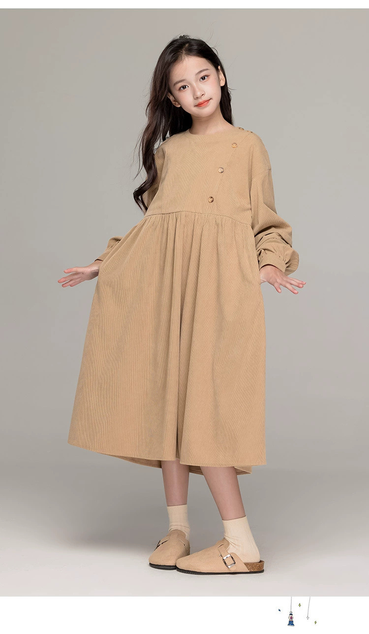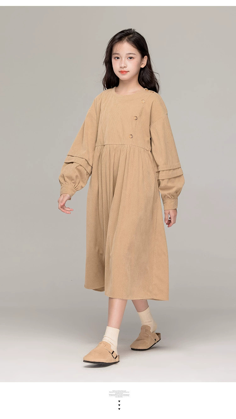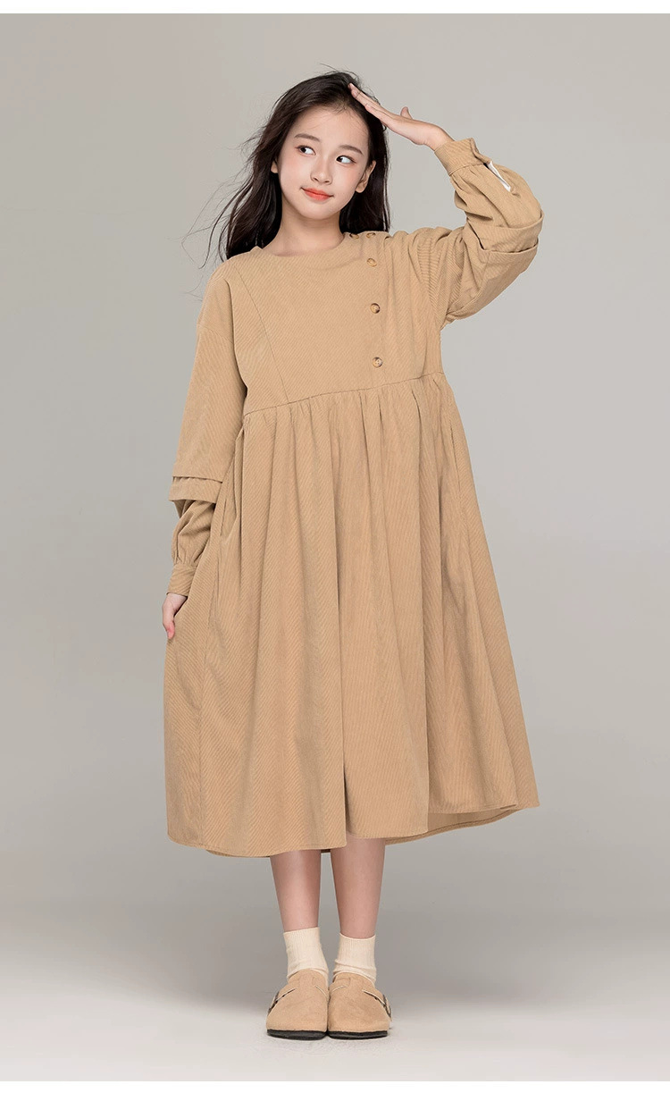 가을 겨울 새 기모 원피스 소녀 느슨한 중간 길이 원피스 큰 어린이 신년 옷 빨간 서양식 긴 원피스스토어 가기