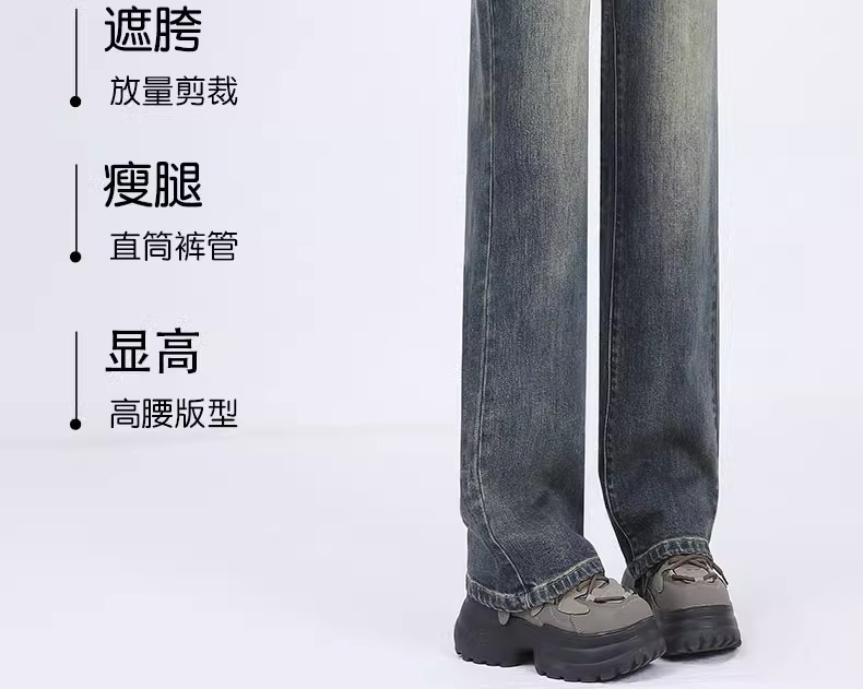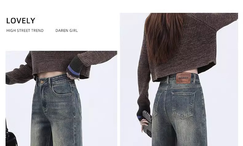 좁은 넓은 다리 바지 여성의 가을 2024 새로운 높은 허리 느슨한 작은 바지 봄과 가을 스트레이트 다리 청바지스토어 가기