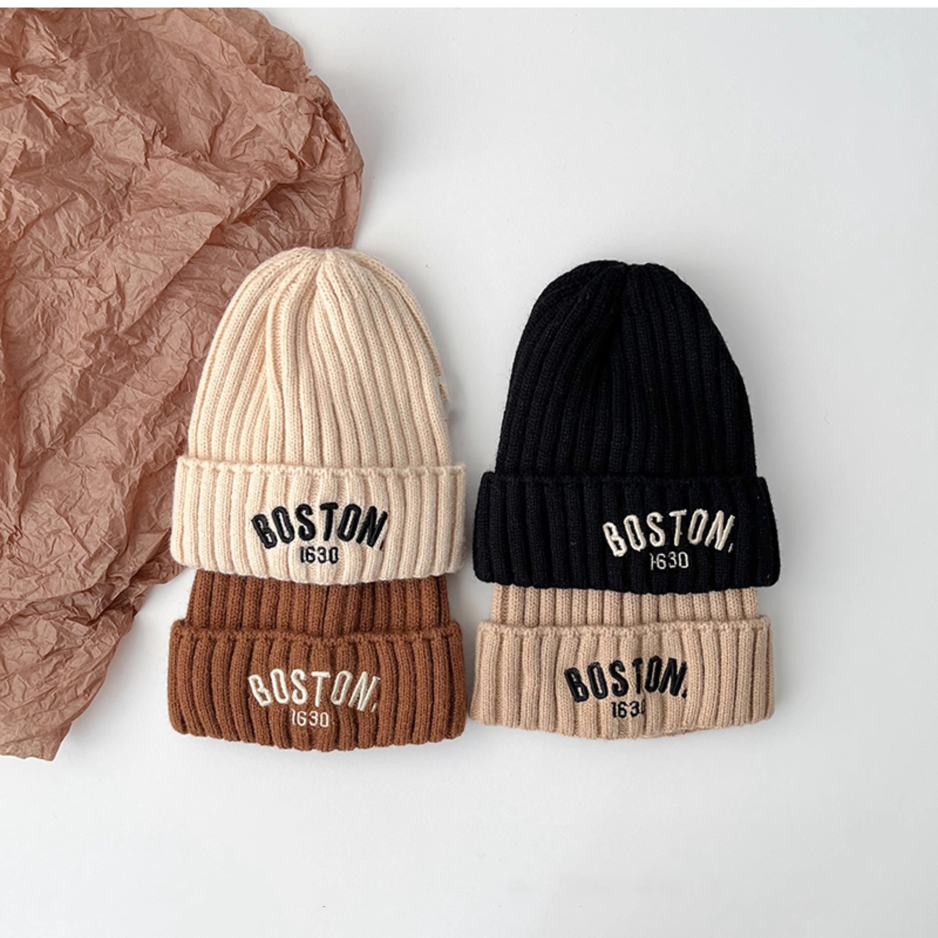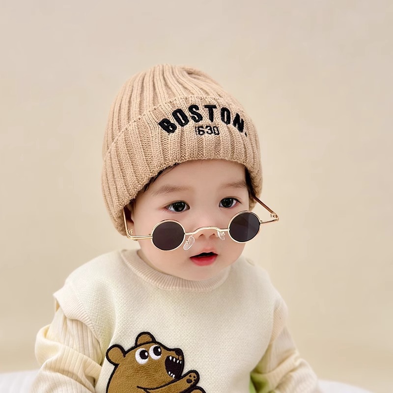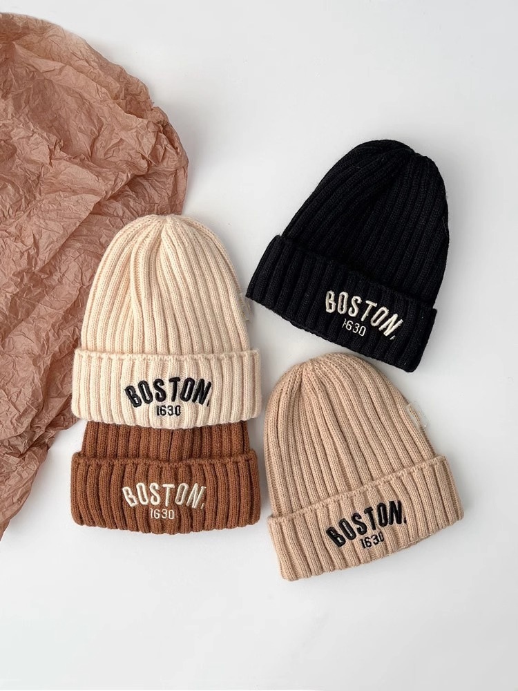 어린이 니트 모자 가을, 겨울 소년과 소녀를위한 한국 스타일의 문자 니트 모직 모자 따뜻한 아기 풀오버 모자스토어 가기