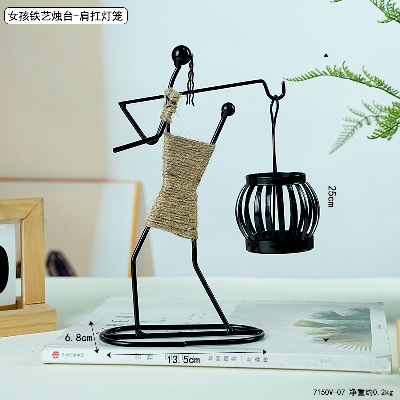 국경 간 간단한 대마 로프 소녀 철 작은 랜턴 촛대 홈 다이닝 룸 거실 아트 장식 촛대