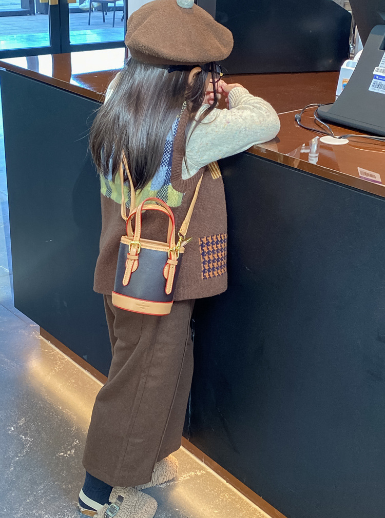 한국 스타일 어린이 패션 버킷 가방 새로운 하이 엔드 어깨 가방 소녀 가방 세련된 간단한 핸드백 크로스 바디 백