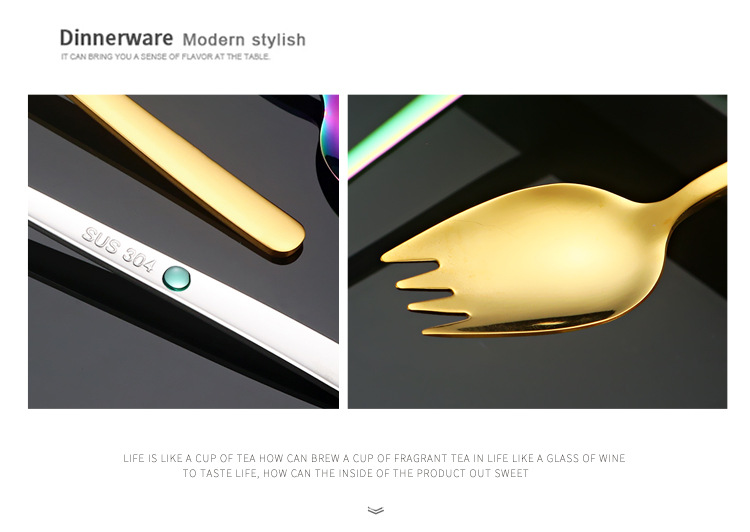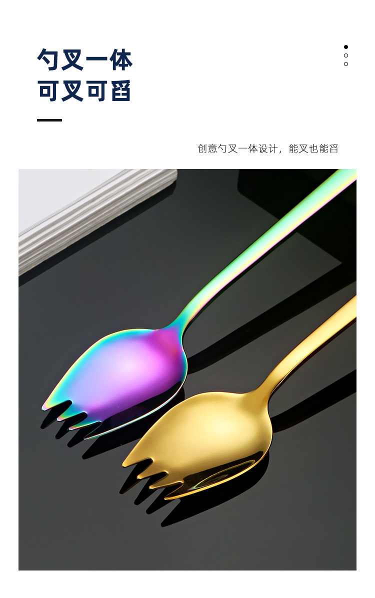 국경 통합 이중 목적 포크 스푼 304 스테인레스 스틸 샐러드 포크 롱 핸들 디저트 과일 포크 스푼 포크