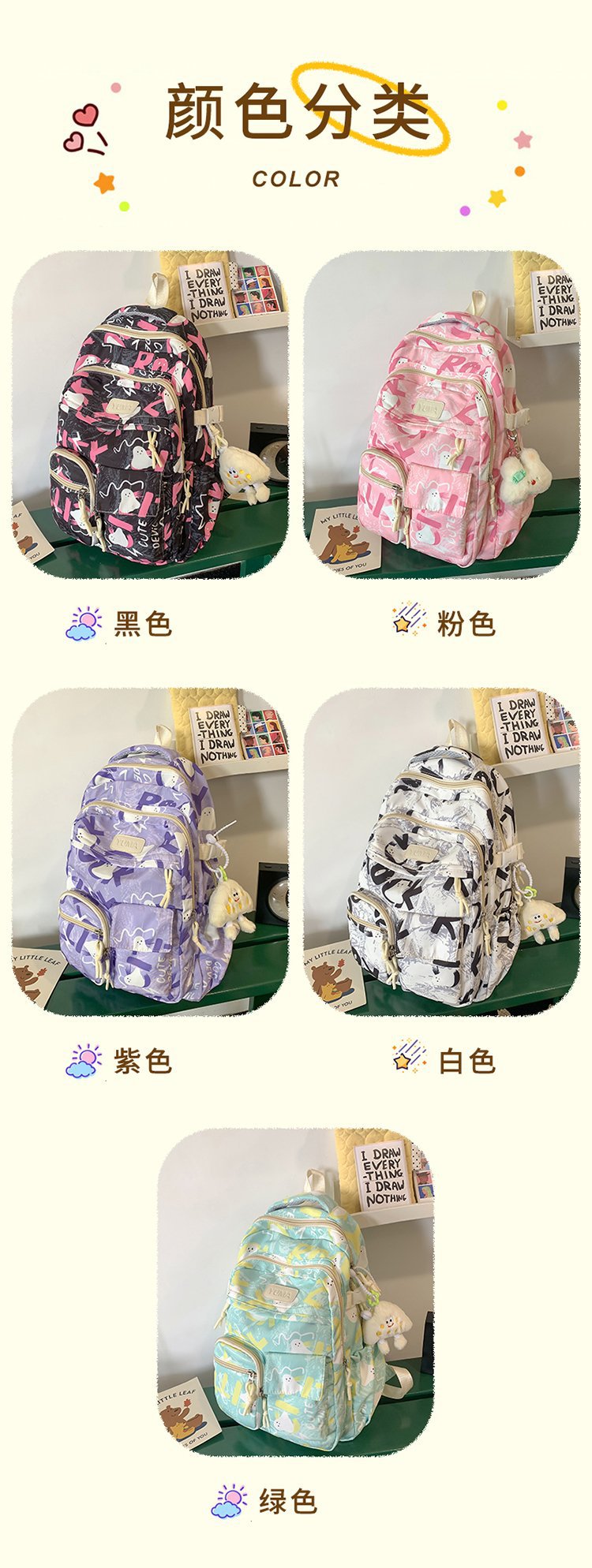 2024 새로운 대용량 고 부가가치 조커 낙서 인쇄 된 학교 가방 중학교 고등학교 대학 배낭스토어 가기