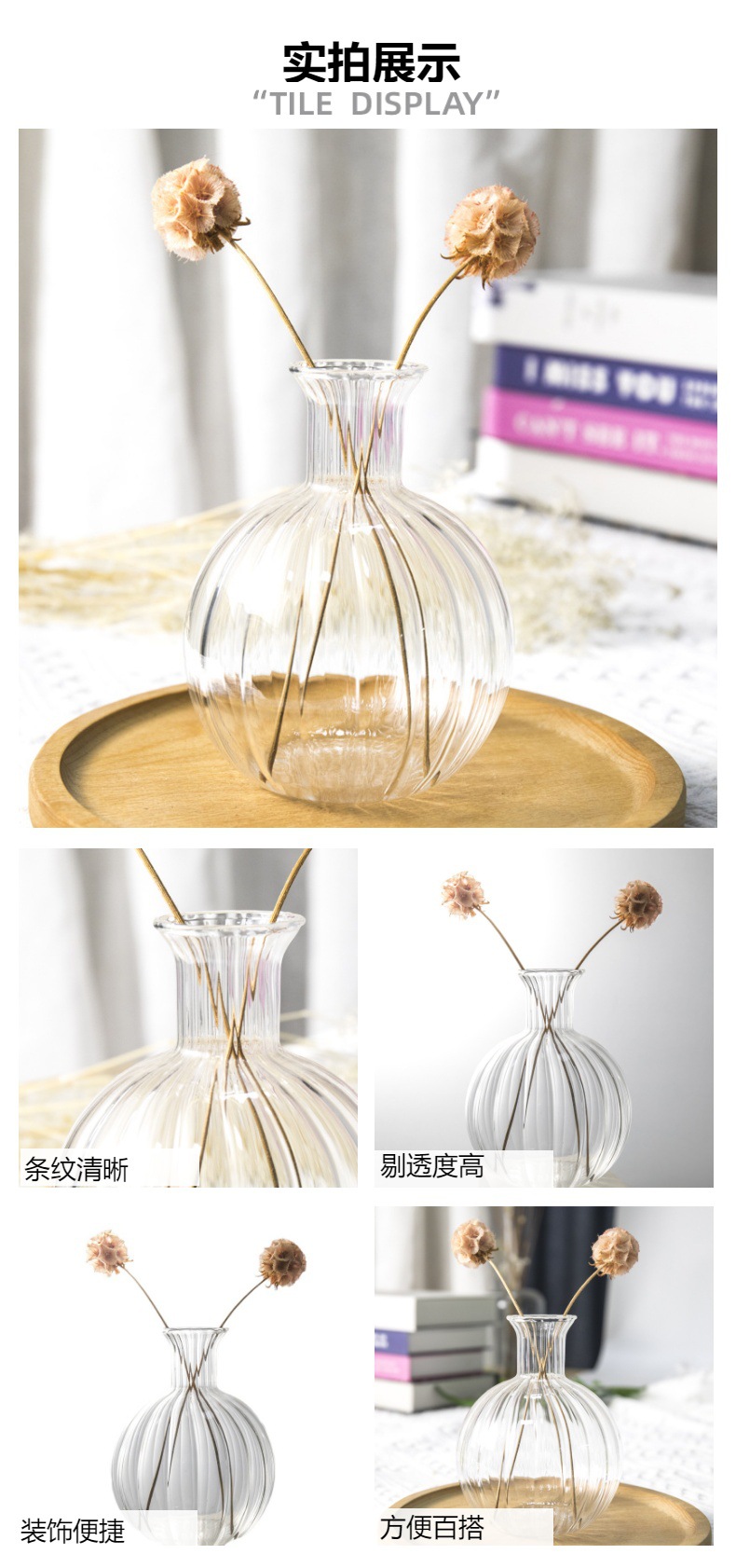창조적 인 줄무늬 유리 꽃병 투명 꽃병 꽃 배열 장치 패션 홈 액세서리 유리 공예
