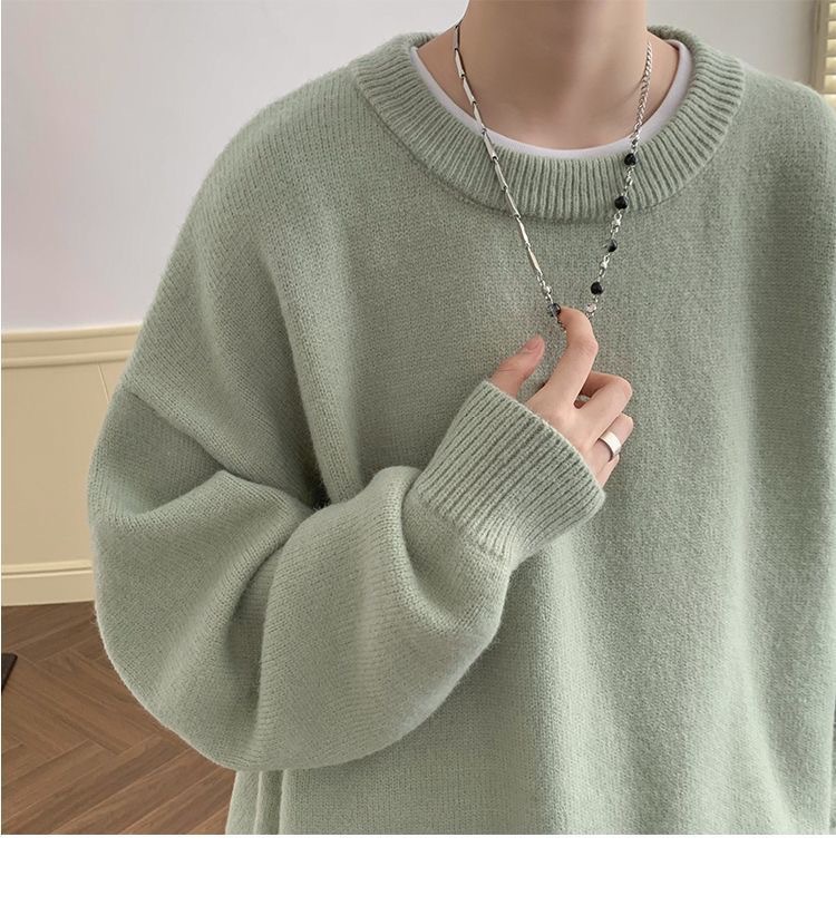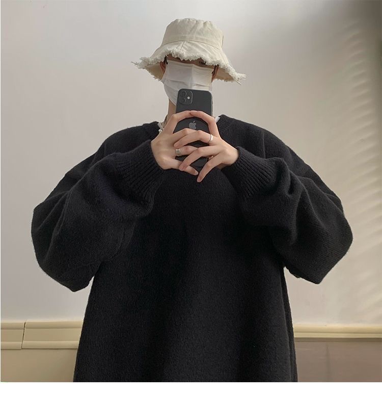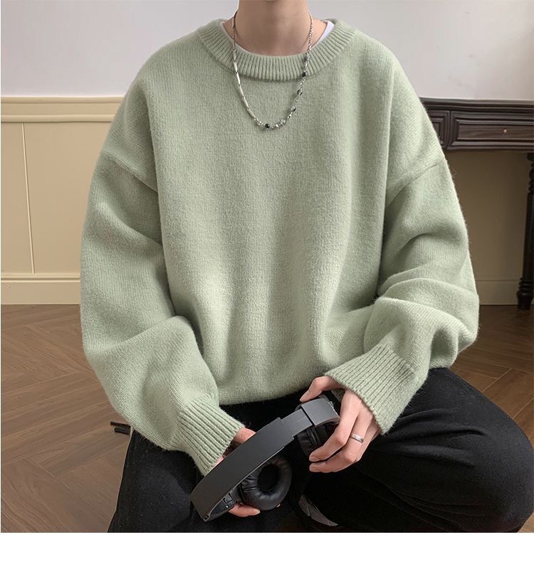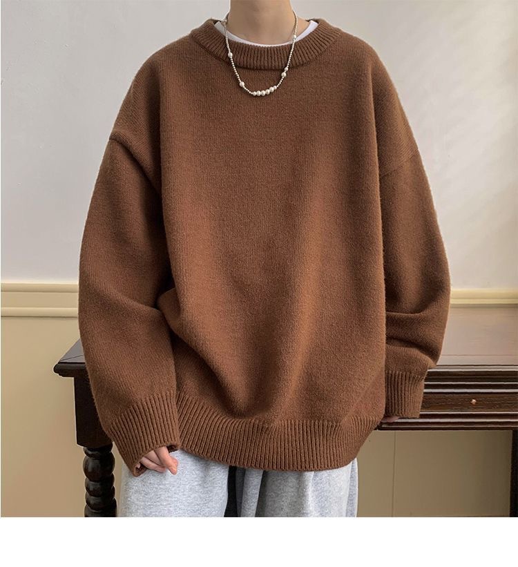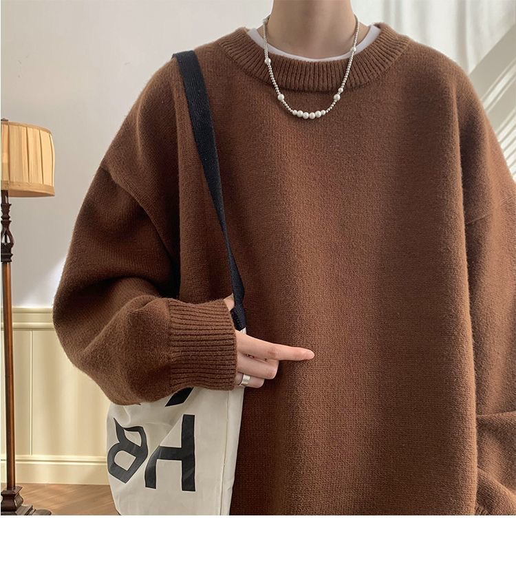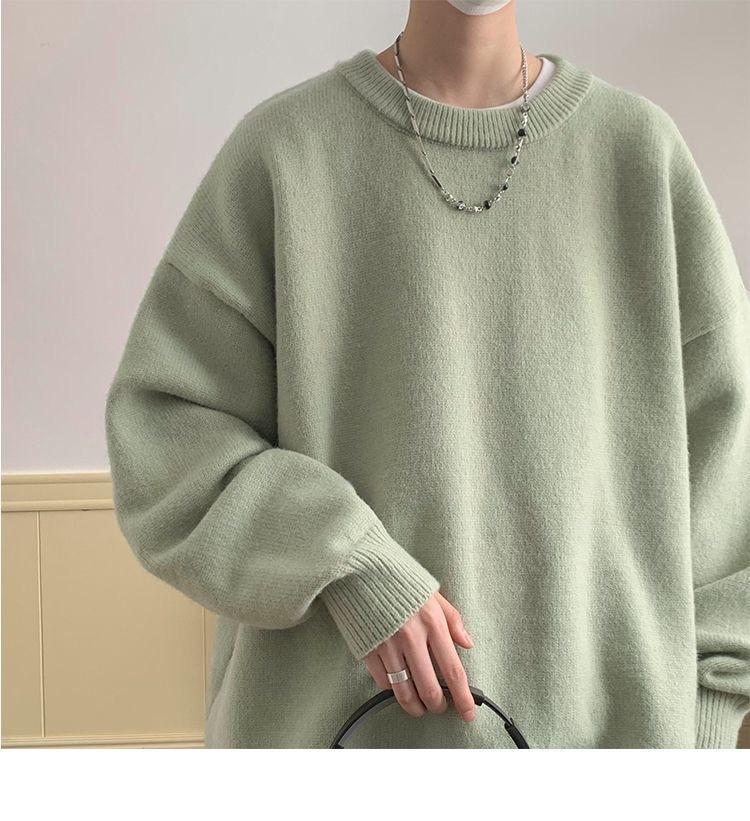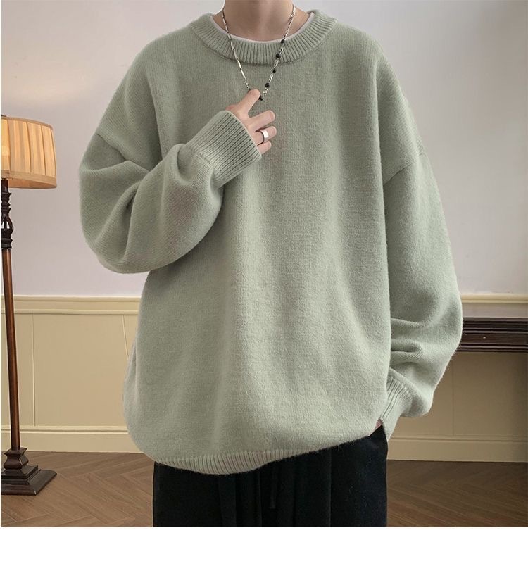 단색 크루 넥 스웨터 남자 가을 겨울 두꺼운 올 매치 니트 스웨터 한국 패션 니트 남성베이스 셔츠 재킷스토어 가기