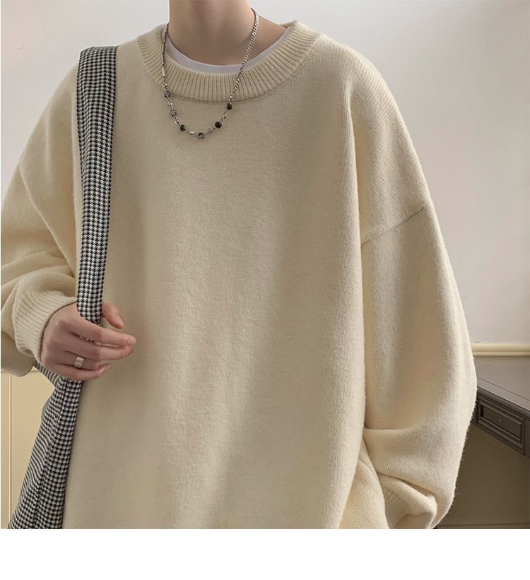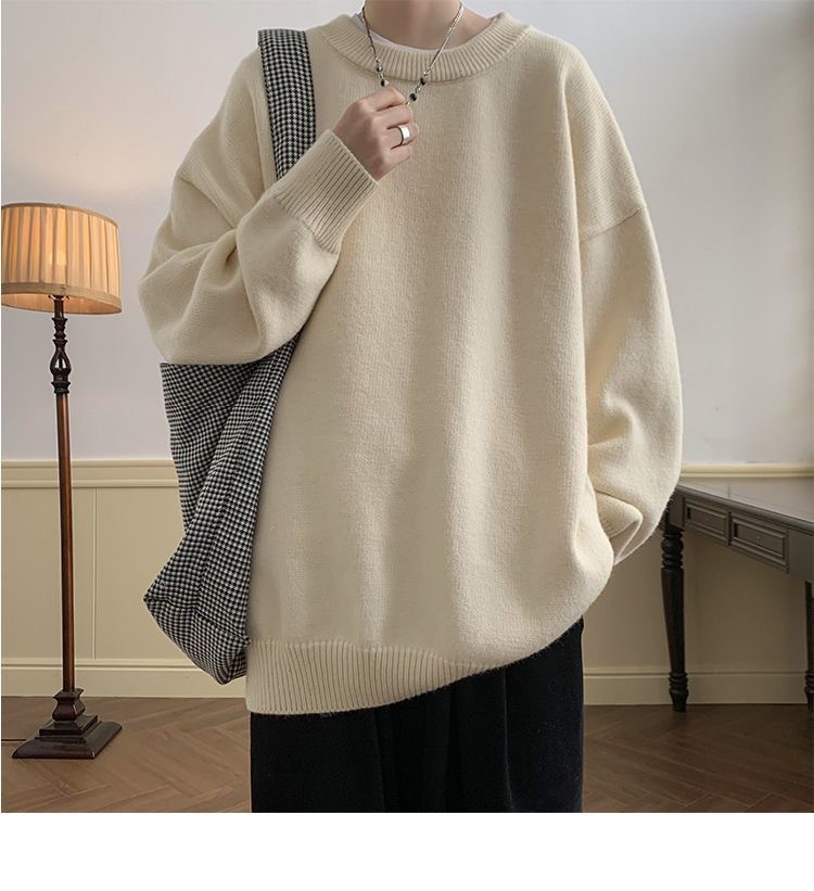 단색 크루 넥 스웨터 남자 가을 겨울 두꺼운 올 매치 니트 스웨터 한국 패션 니트 남성베이스 셔츠 재킷