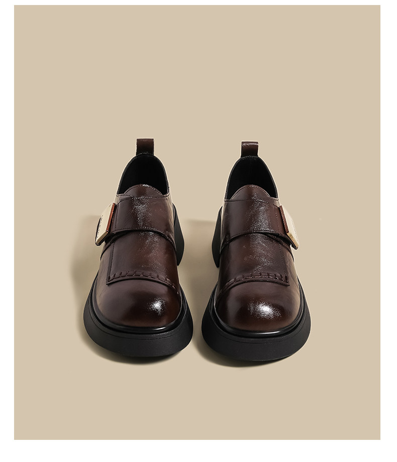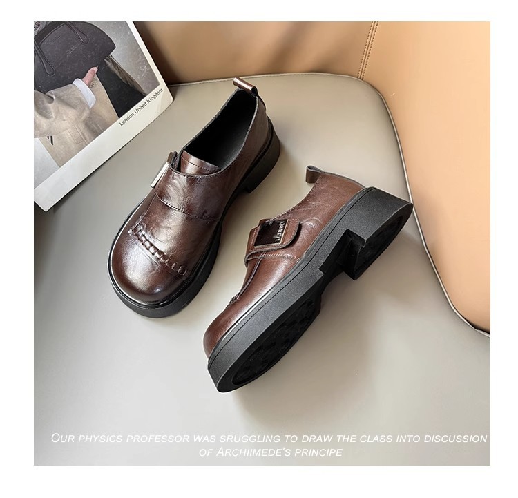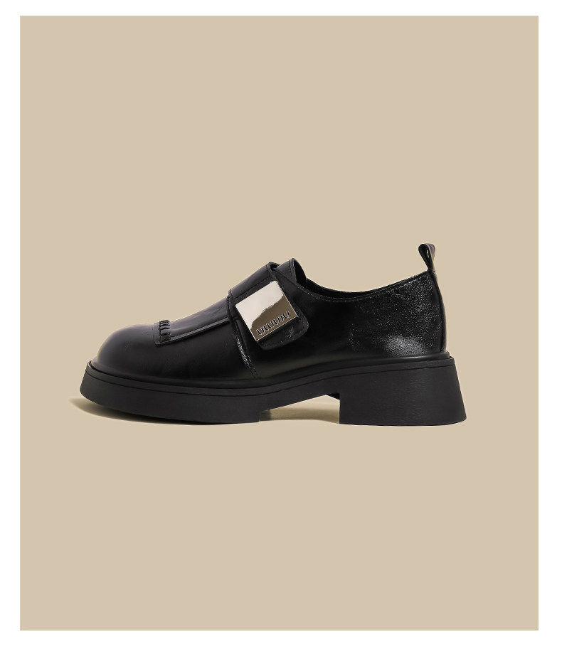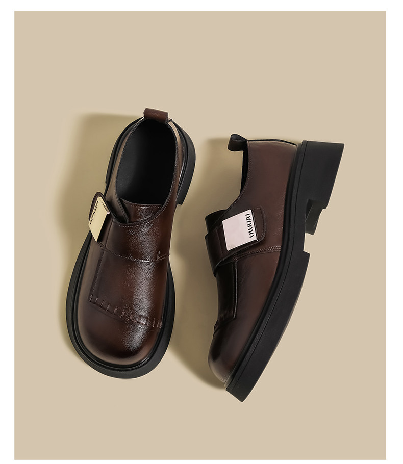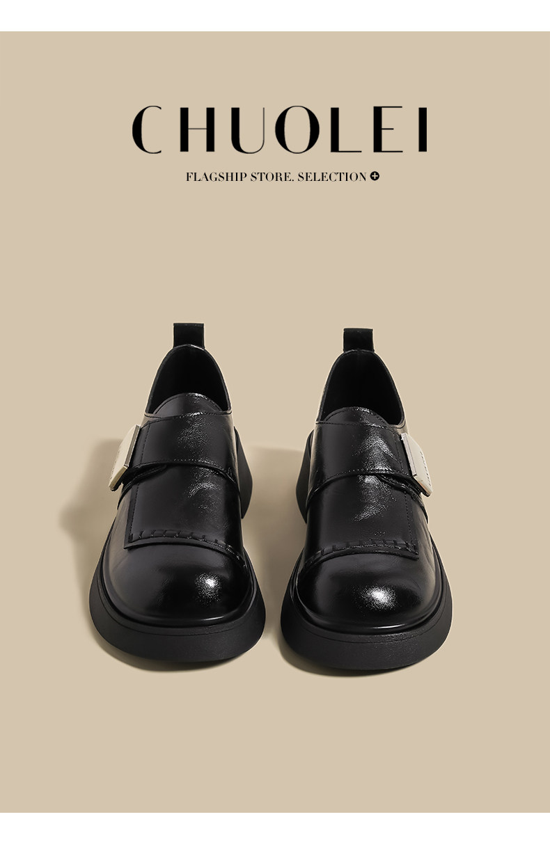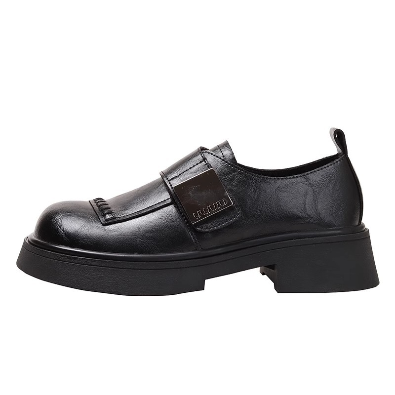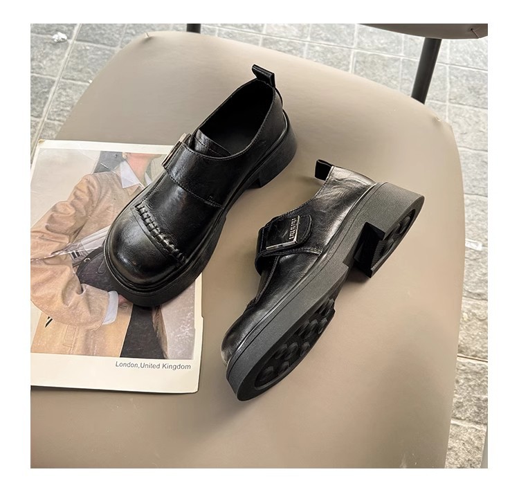 블랙 로퍼 여성 2025 겨울 새 기모 수제 오래 된 추악한 귀여운 작은 블랙 영국 스타일 가죽 신발스토어 가기