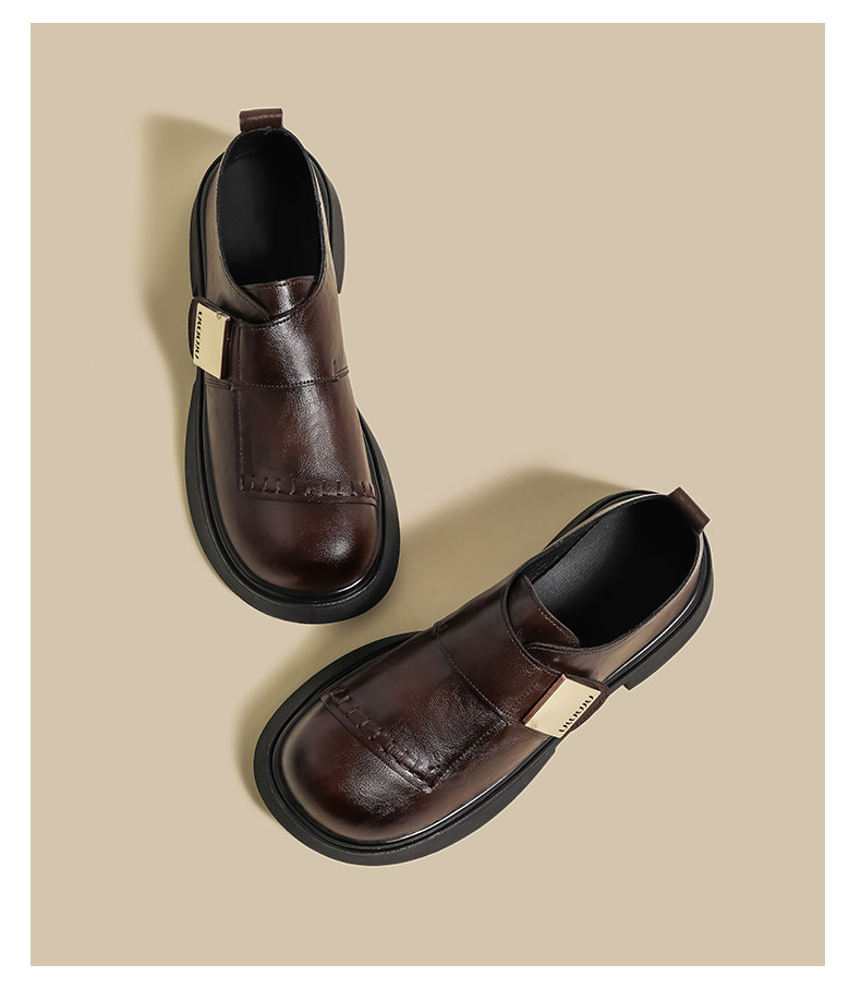 블랙 로퍼 여성 2025 겨울 새 기모 수제 오래 된 추악한 귀여운 작은 블랙 영국 스타일 가죽 신발