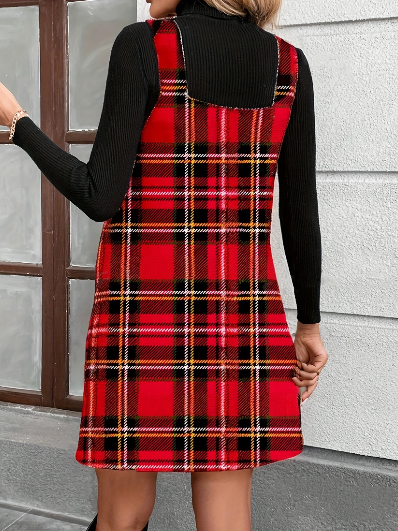 국경 간 유럽과 미국 아마존 가을과 겨울 새로운 우아한 기질 격자 무늬 원피스스토어 가기