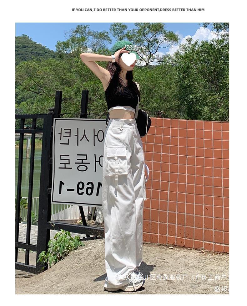 국경 간 여성용 와이드 레그 바지 청바지 슬림 아메리칸 스프링 화이트 작업복 높은 허리 느슨한 새로운 스타일 거리 여름스토어 가기