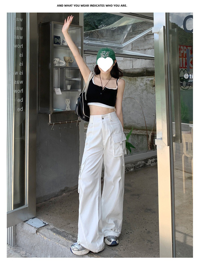 국경 간 여성용 와이드 레그 바지 청바지 슬림 아메리칸 스프링 화이트 작업복 높은 허리 느슨한 새로운 스타일 거리 여름