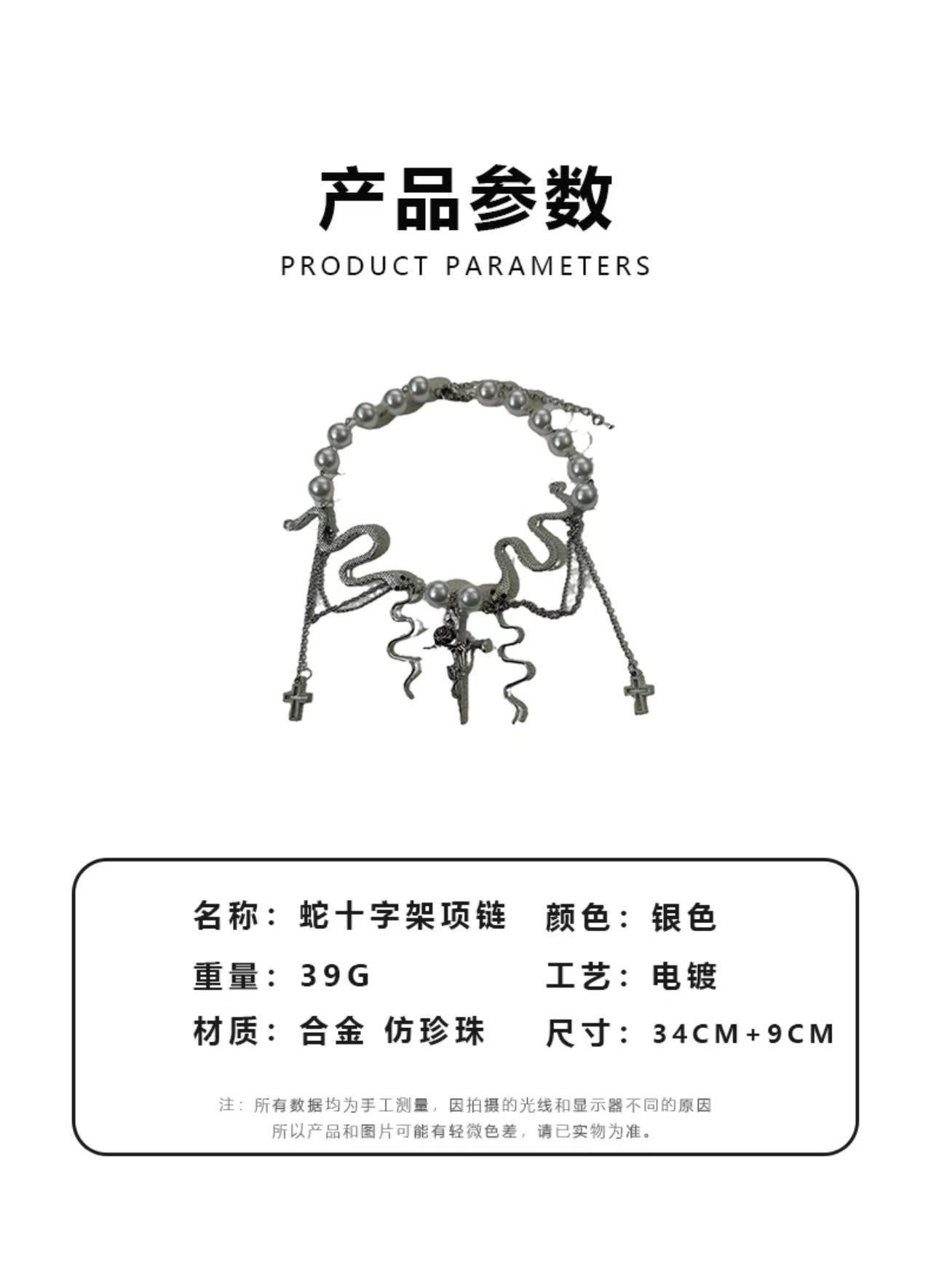 진주 뱀 술 장미 크로스 목걸이 여성용 콜라본 체인 초커 목걸이 빛 럭셔리 야비 스타일 목걸이