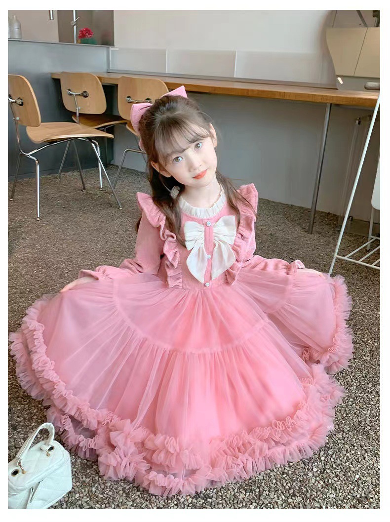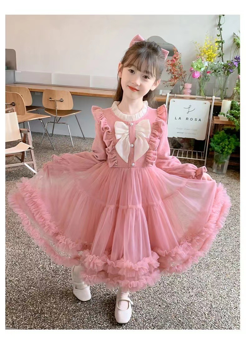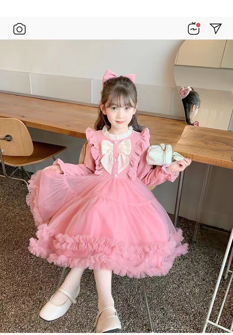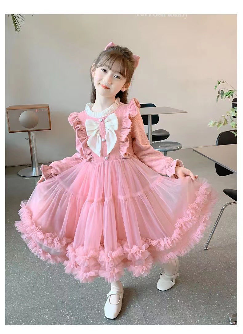유행 소녀 드레스 2024 가을, 겨울 새로운 디자인 중공업 접합 메쉬 푹신한 공주 드레스 유행스토어 가기
