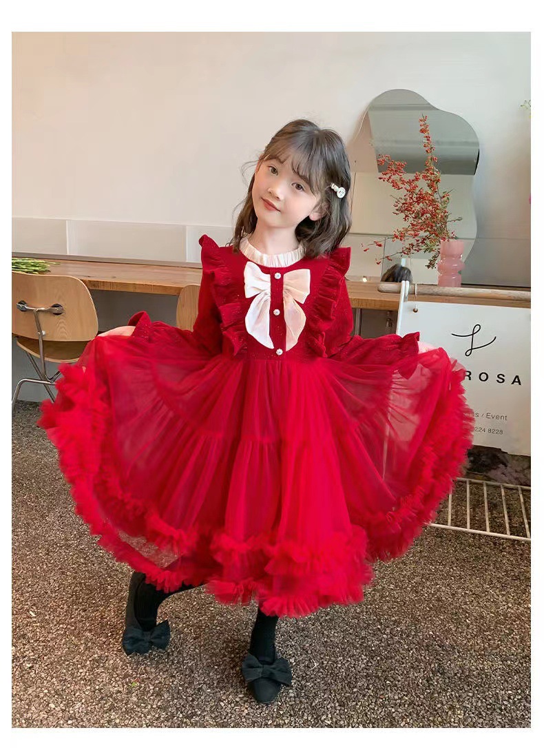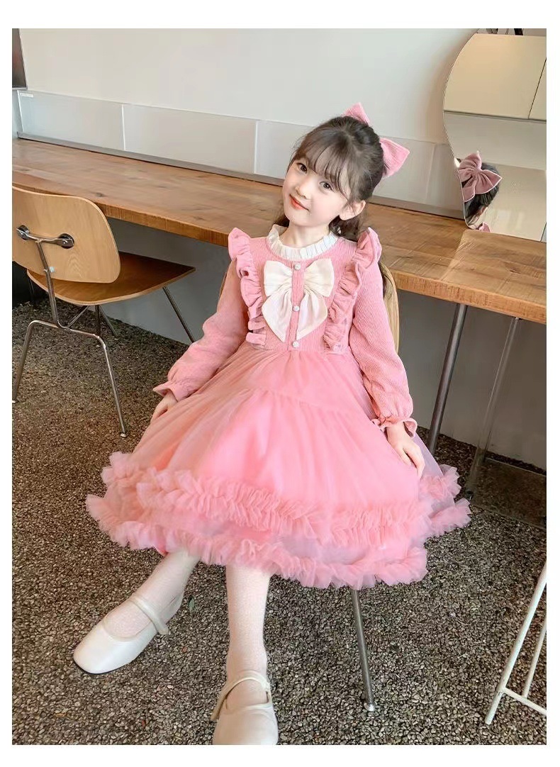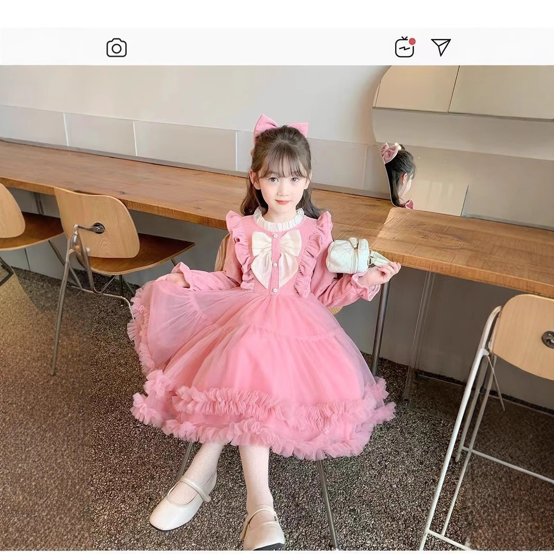 유행 소녀 드레스 2024 가을, 겨울 새로운 디자인 중공업 접합 메쉬 푹신한 공주 드레스 유행스토어 가기