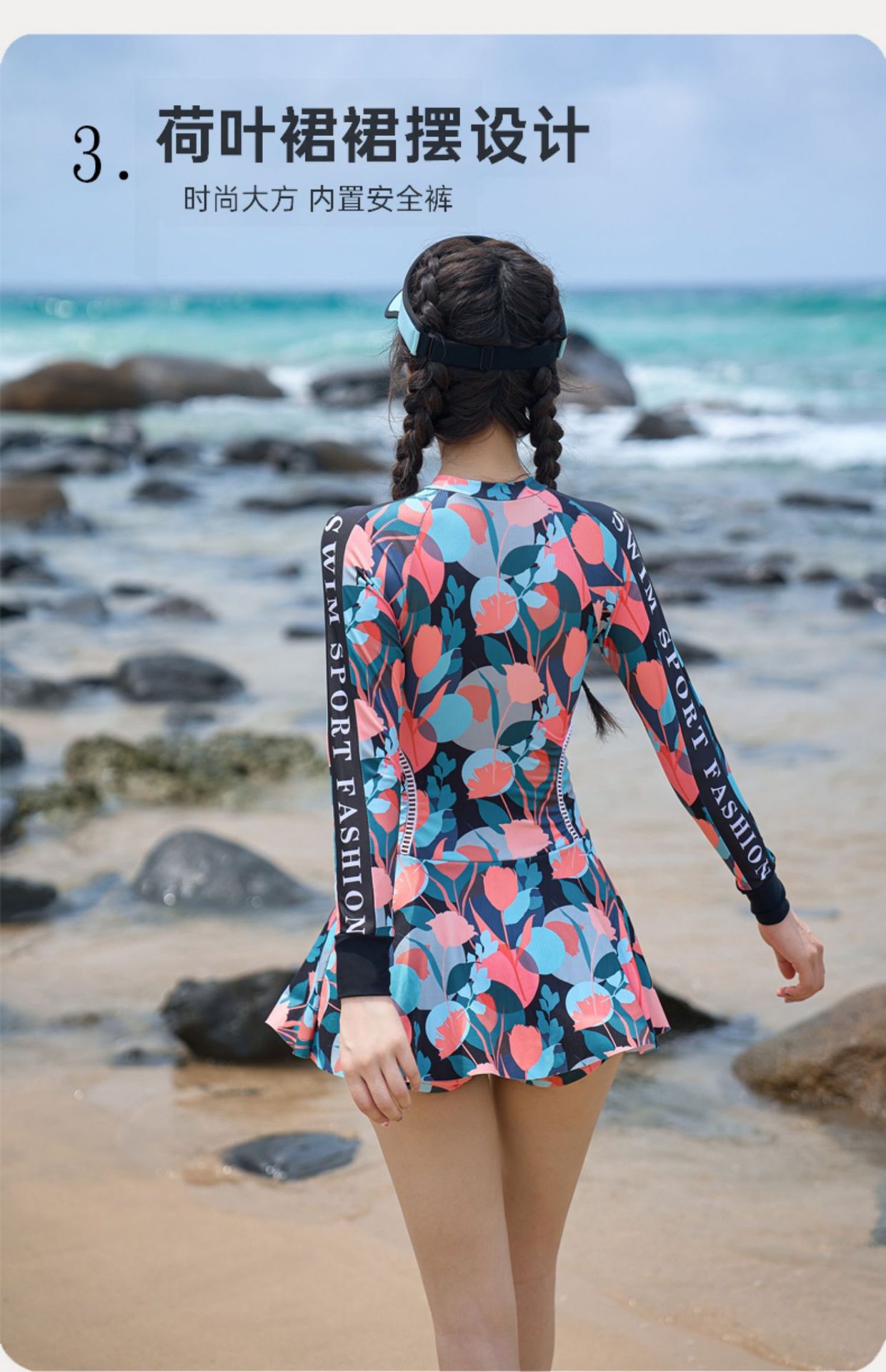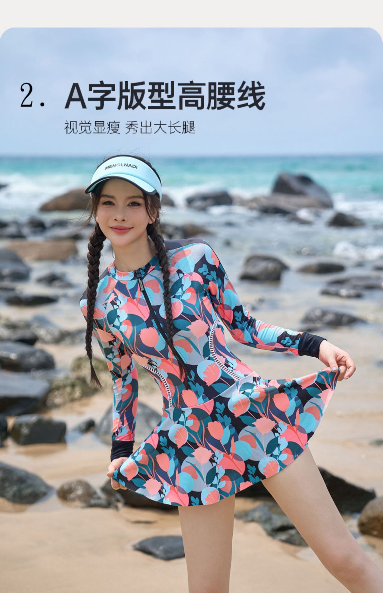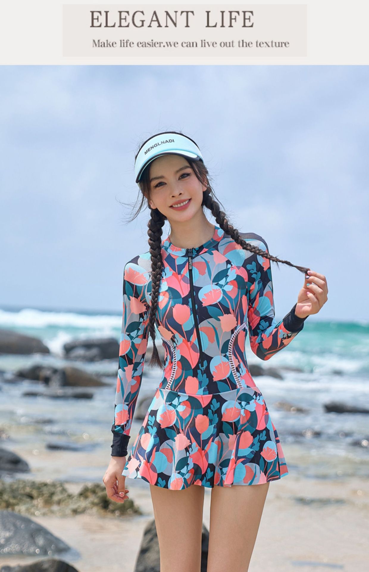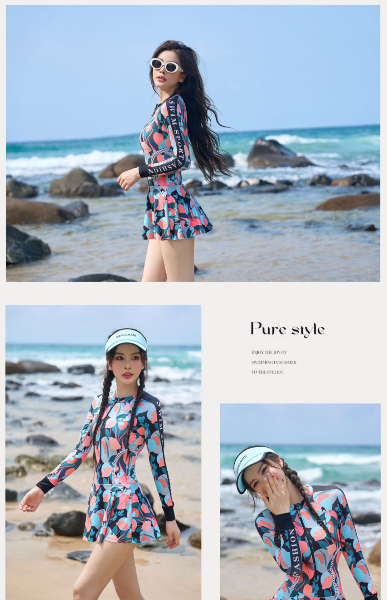 수영복 여성 스포츠 선스크린 온천 수영복 2024 긴 소매 요정 스타일 수영복 여성 성인 수영복스토어 가기