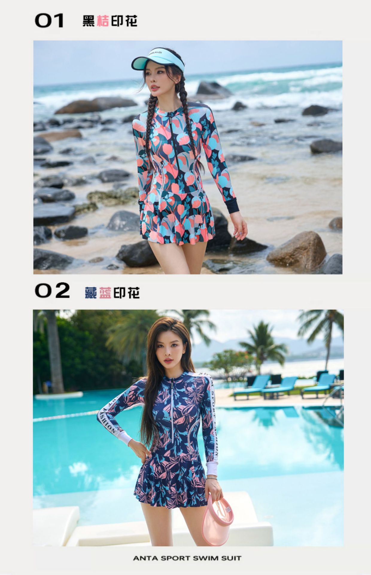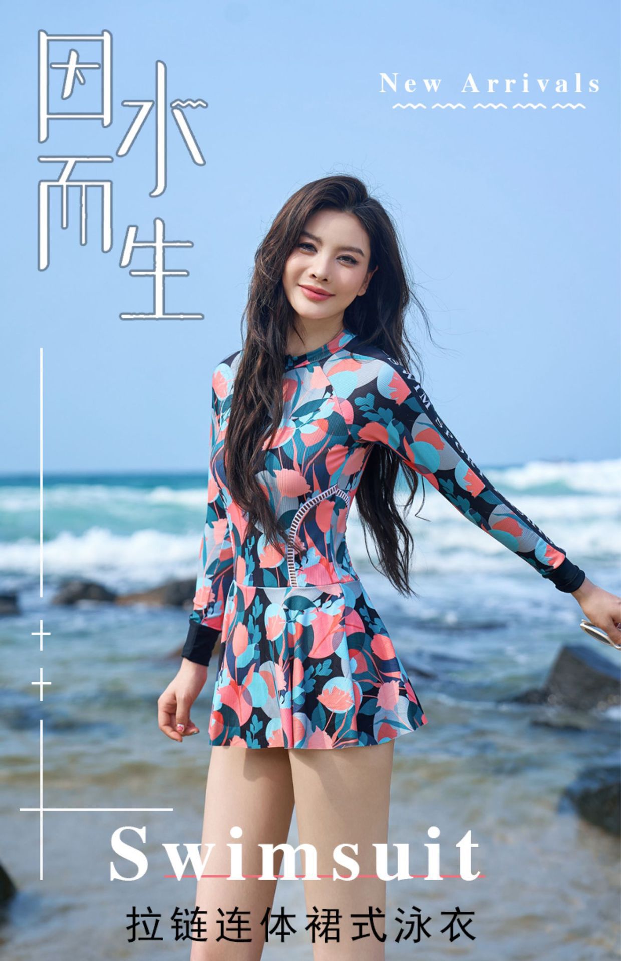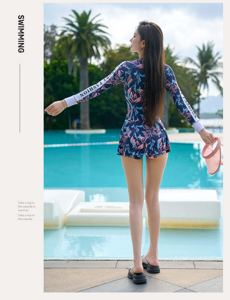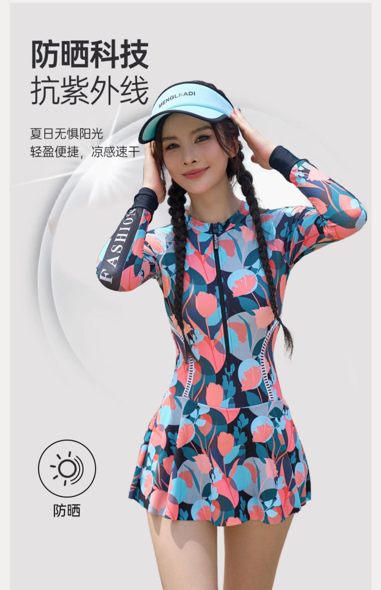 수영복 여성 스포츠 선스크린 온천 수영복 2024 긴 소매 요정 스타일 수영복 여성 성인 수영복스토어 가기