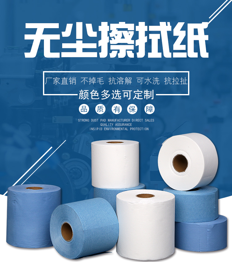 먼지가없는 종이 산업 닦는 종이 먼지 흡수 종이 흡수성 물 흡수 부직포 블루 화이트 대형 롤 먼지없는 천 기름 닦기 종이스토어 가기