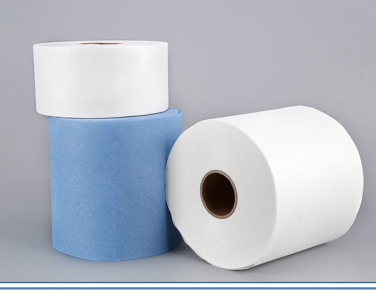 먼지가없는 종이 산업 닦는 종이 먼지 흡수 종이 흡수성 물 흡수 부직포 블루 화이트 대형 롤 먼지없는 천 기름 닦기 종이