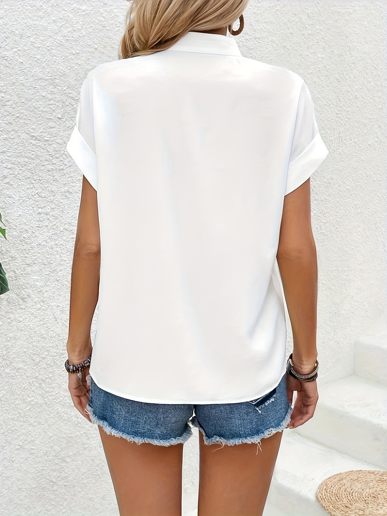 여성용 단색 짧은 소매 셔츠스토어 가기
