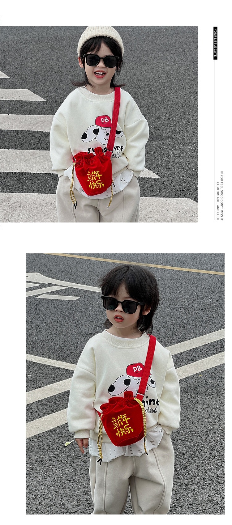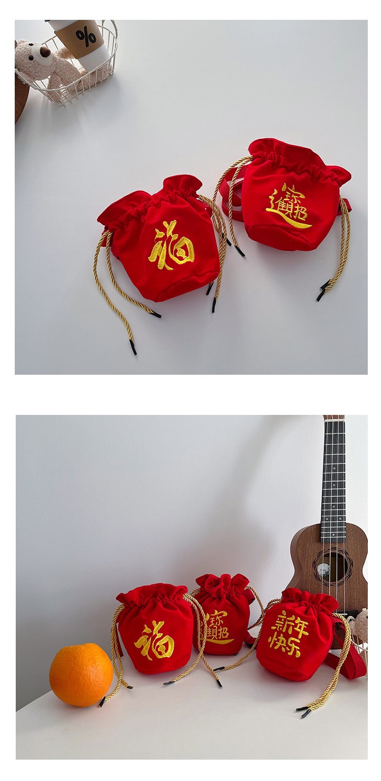 새해 행운의 가방 빨간 봉투 어린이 소녀 가방 귀여운 축제 새해 돈 가방 자수 크로스 바디 동전 지갑
