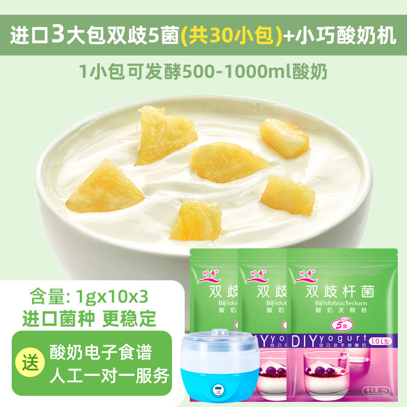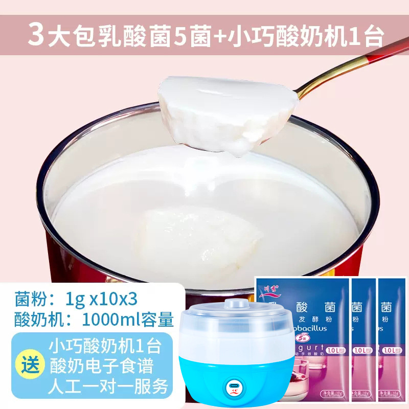 • 무료 요거트 기계: 비피도박테리움 박테리아 5개 팩 3개 + 소형 요거트 기계 1개