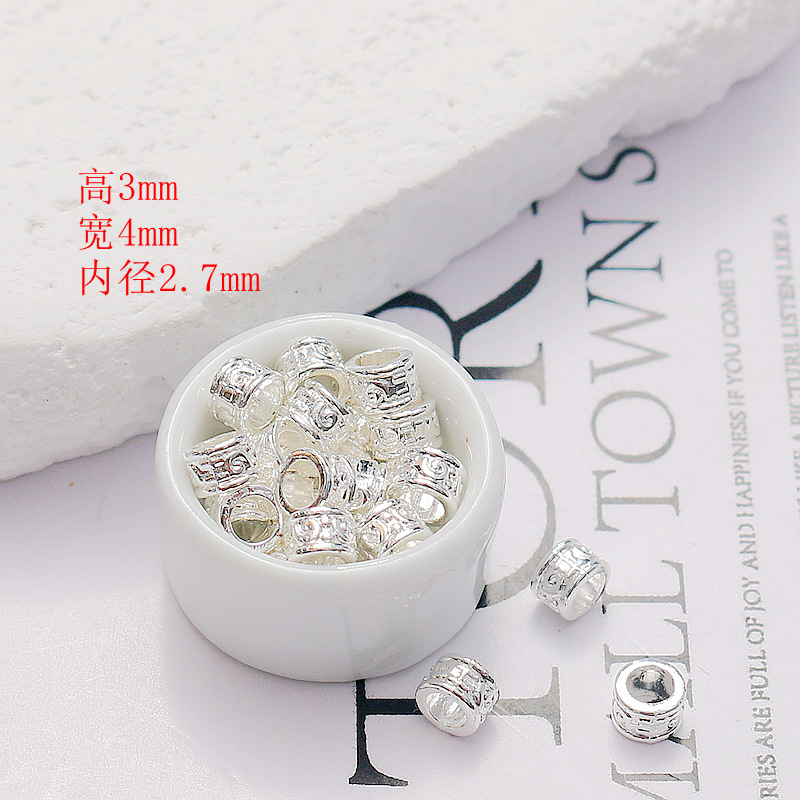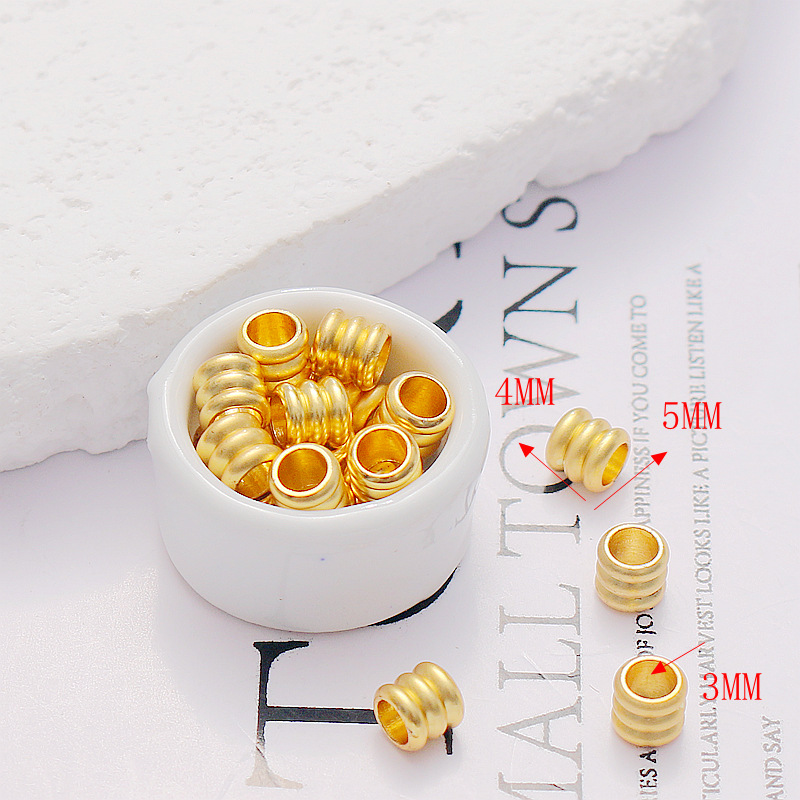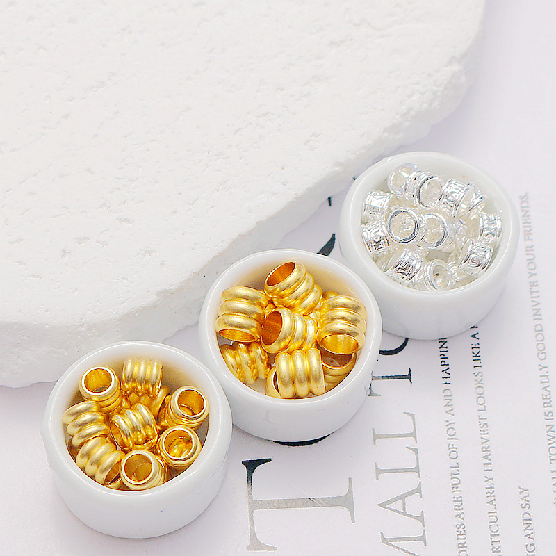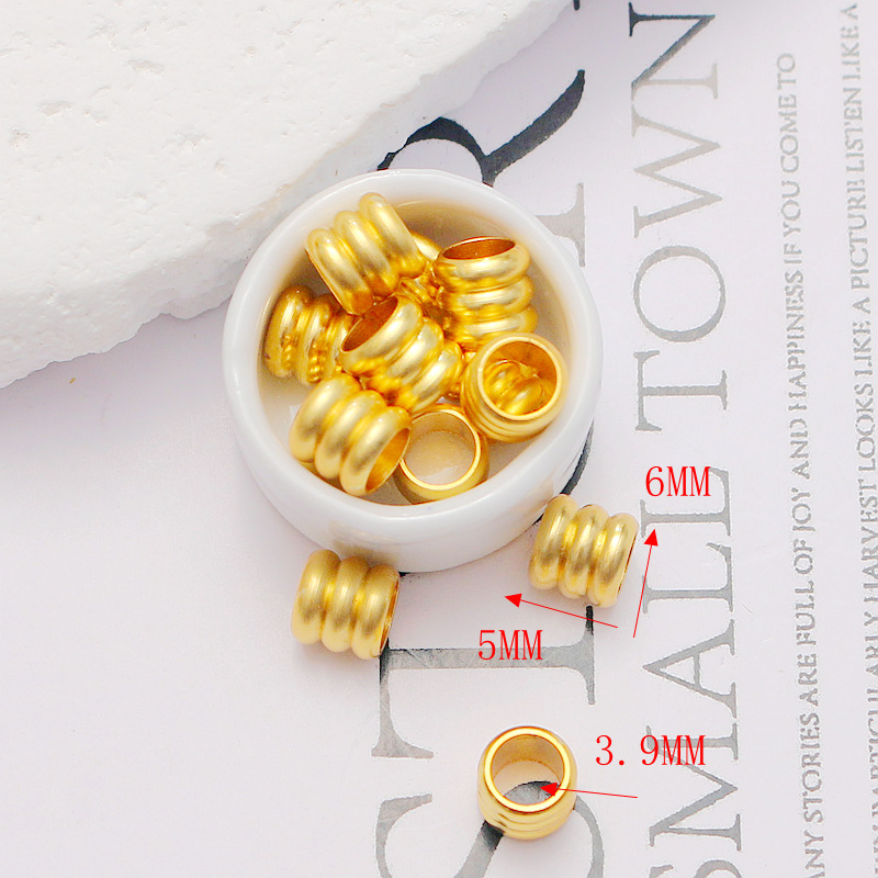 哑金保色大孔三层弹簧螺纹桶珠银色复古DIY手链项链手工饰品配件