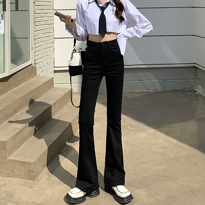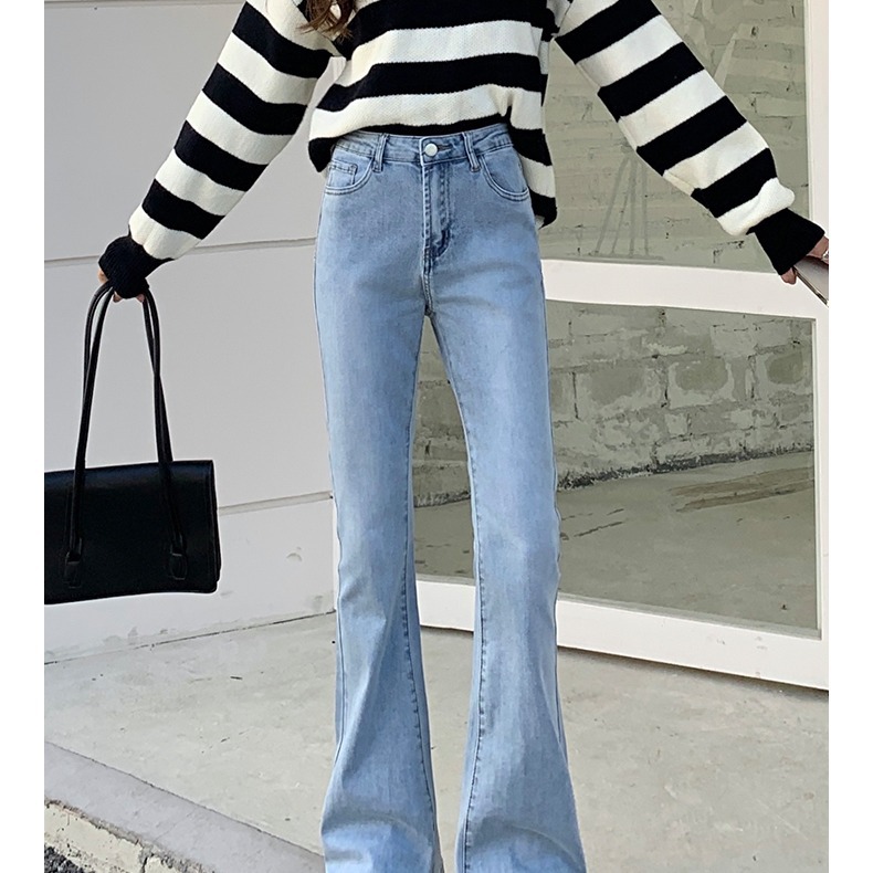 블루 아메리칸 스타일 마이크로 라 청바지 여성의 가을 2024 새로운 스타일 말굽 높은 허리 트럼펫 바지스토어 가기