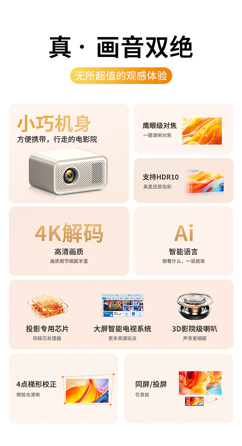 • 초고화질 자이언트 스크린 상위 버전 [자동 초점 + AI 음성 제어]