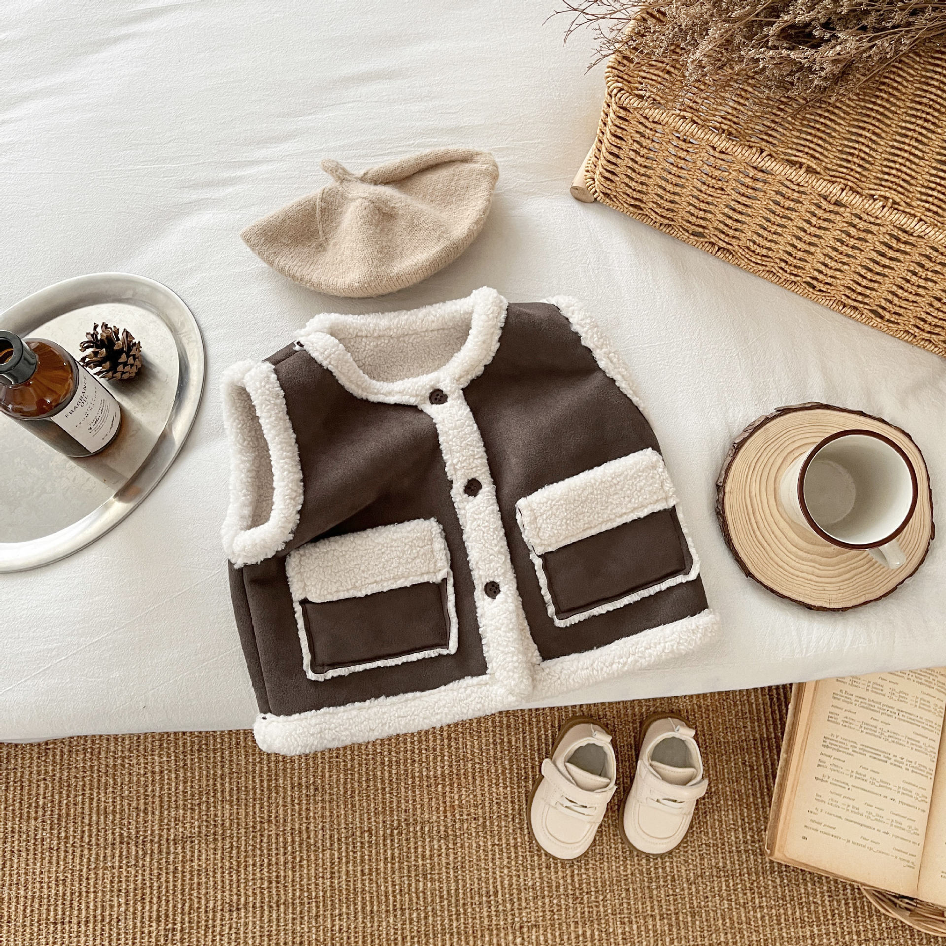 여자 기모 조끼 가을 겨울 2024 새로운 아기 겨울 모피 원피스 조끼스토어 가기