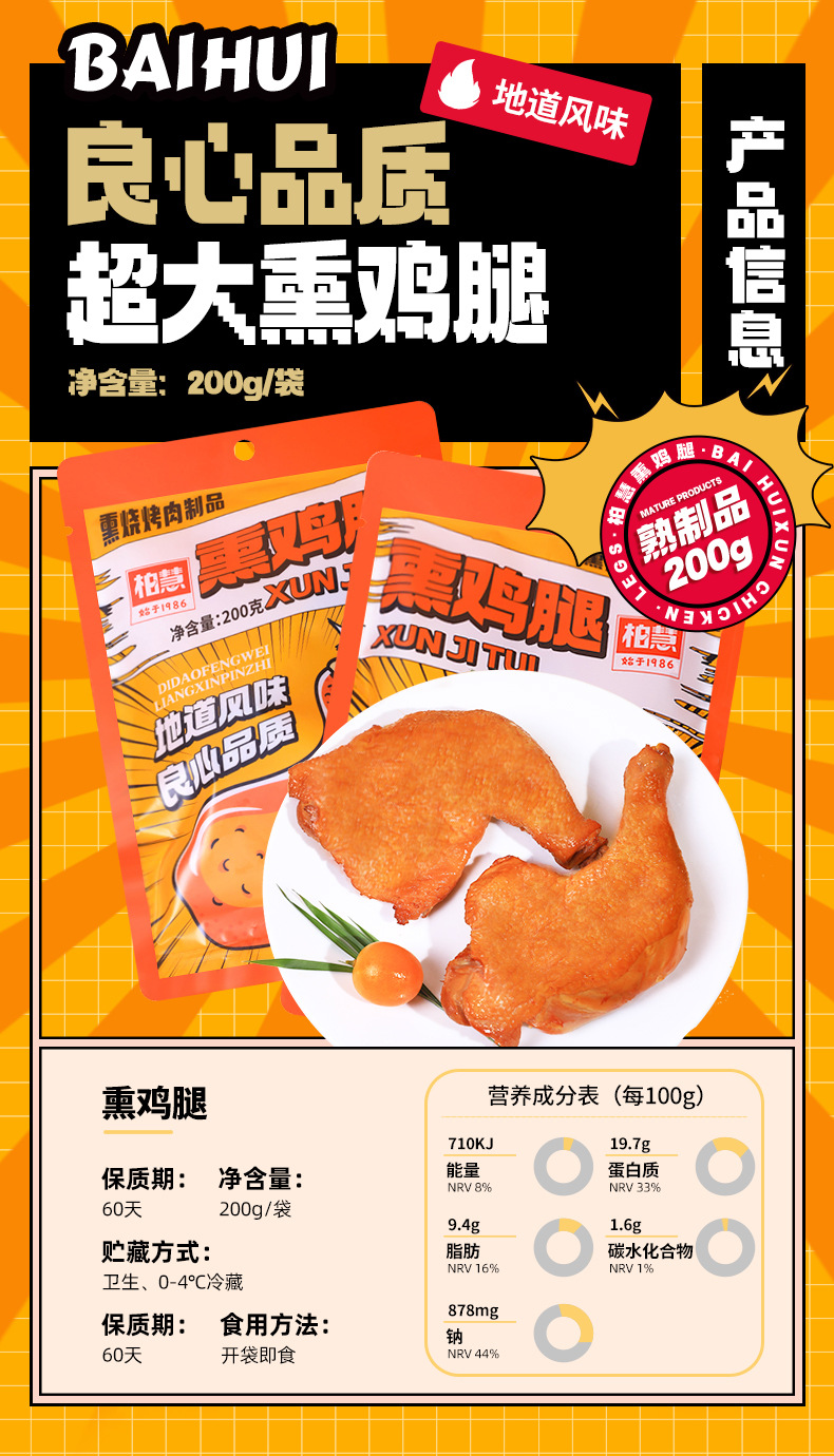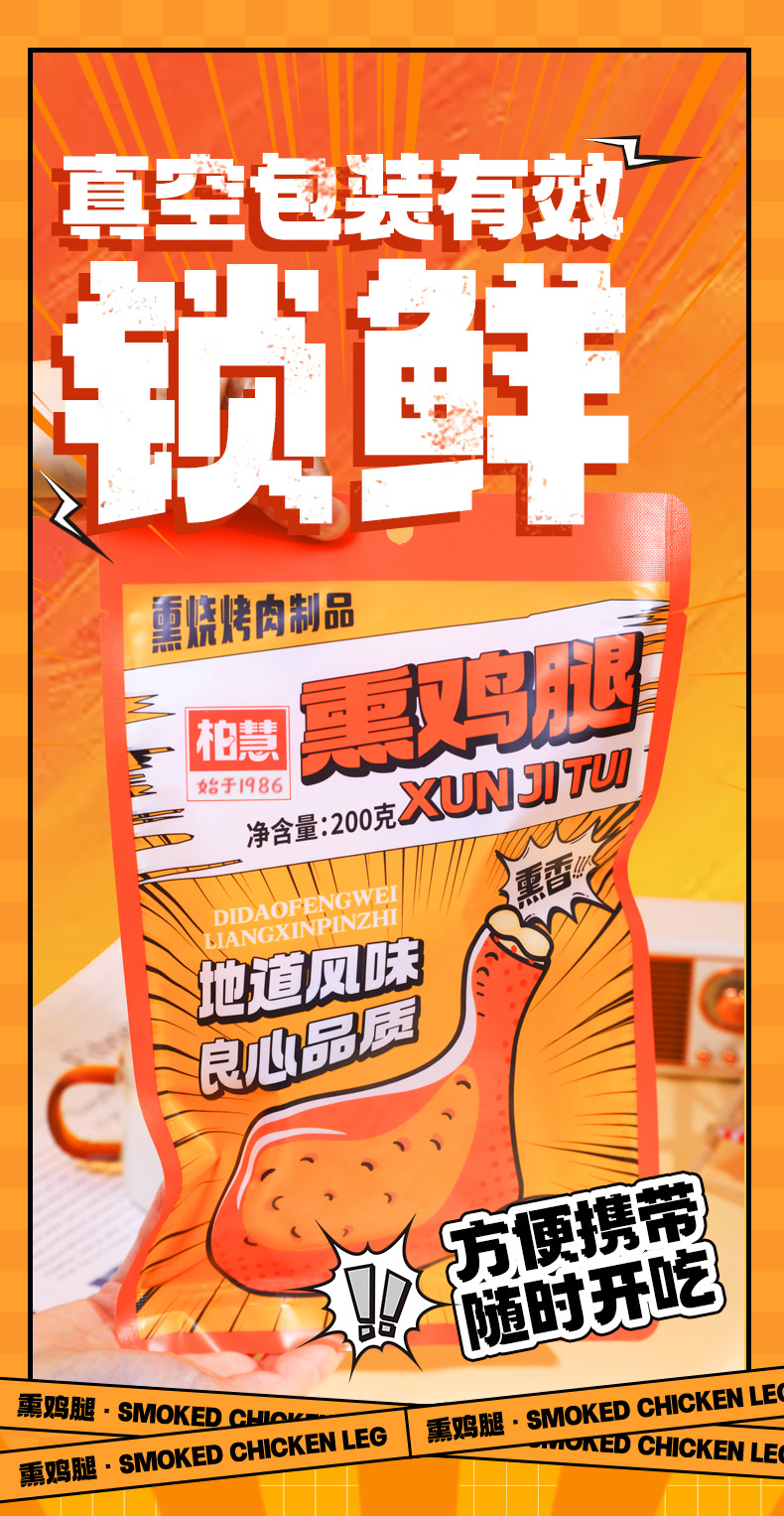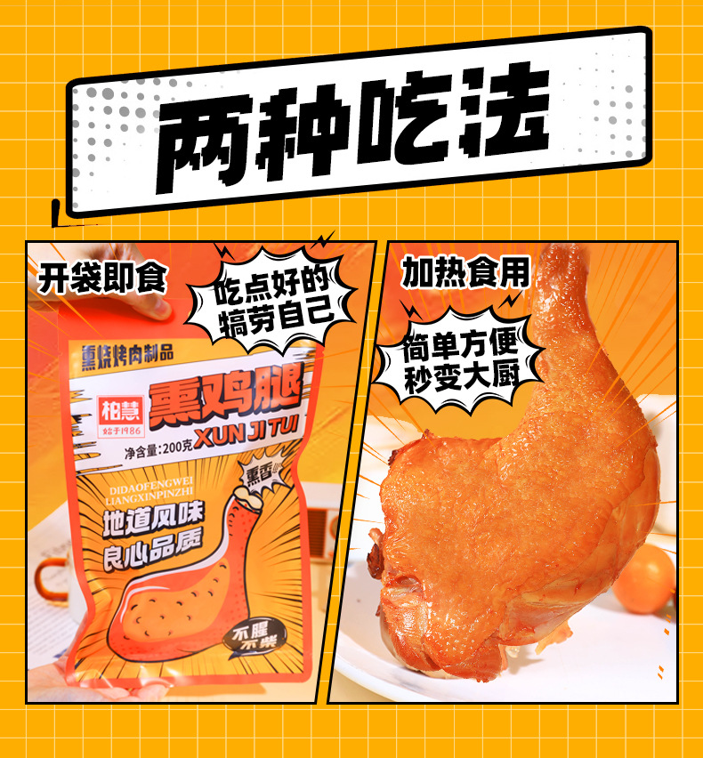 바이 후이 훈제 치킨 다리 익힌 권총 오픈 백 먹을 준비가 된 전체 다리 간식 손으로 찢어진 닭 다리 북동쪽 200g스토어 가기
