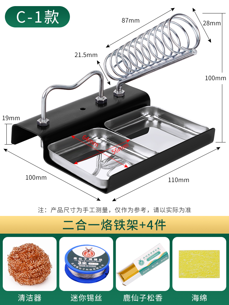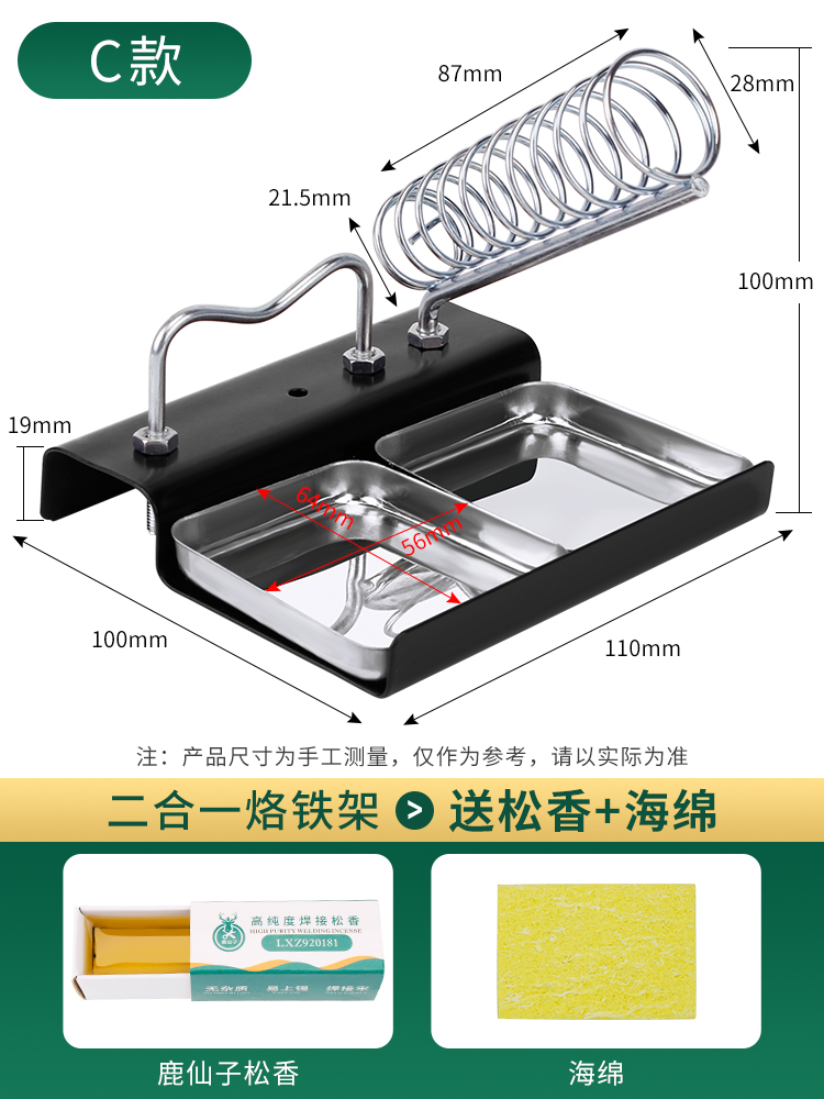 • 이중 슬롯 납땜 인두 스탠드 [2-in-1]에는 로진 + 스펀지 C형이 함께 제공됩니다.