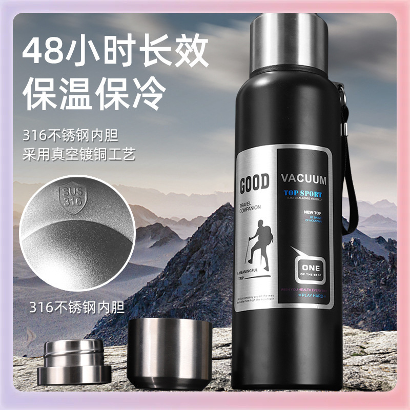 316 스테인레스 스틸 라이너 진공 올 스틸 보온병 남성 야외 여행 등산 휴대용 대용량 보온병