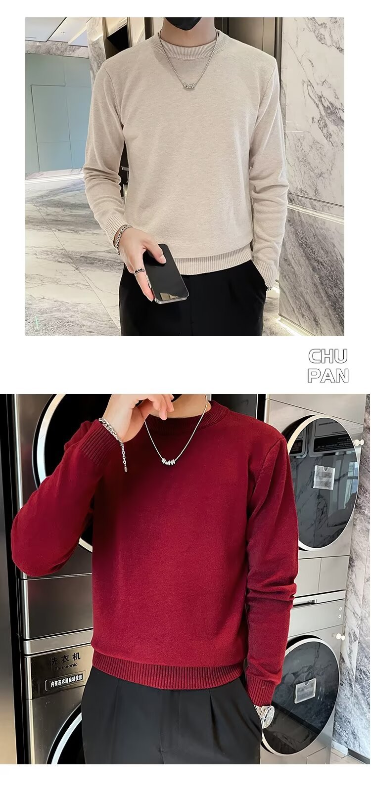 하프 터틀넥 스웨터 남자의 가을과 겨울 단색 캐주얼 베이스 스웨터 일본 스타일 트렌디 한 간단한 잘 생긴 풀오버 스웨터