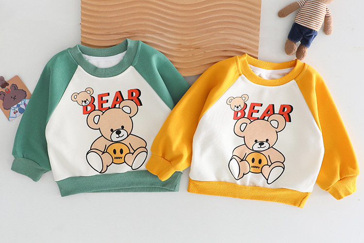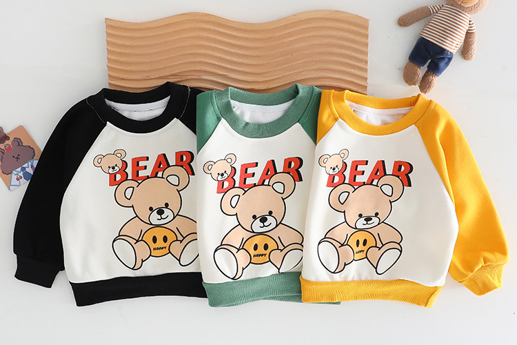 소년의 봄과 가을 옷 세트 2024 새로운 스타일 어린이 봄 만화 곰 크루 넥 스웨트 셔츠 투피스 세트스토어 가기