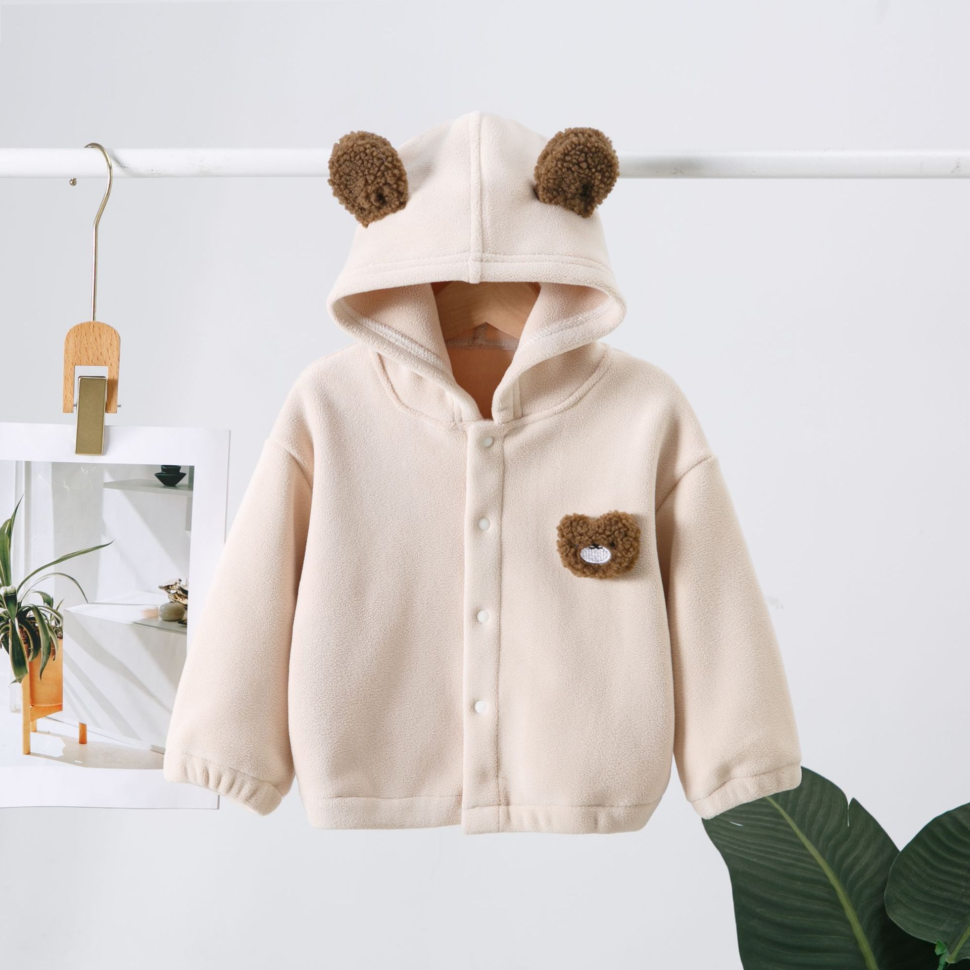2024 새로운 스타일 외부 따뜻한 아기 소녀 가을 및 겨울 캐주얼 탑 기모 두꺼운 아기 후드 만화 자켓