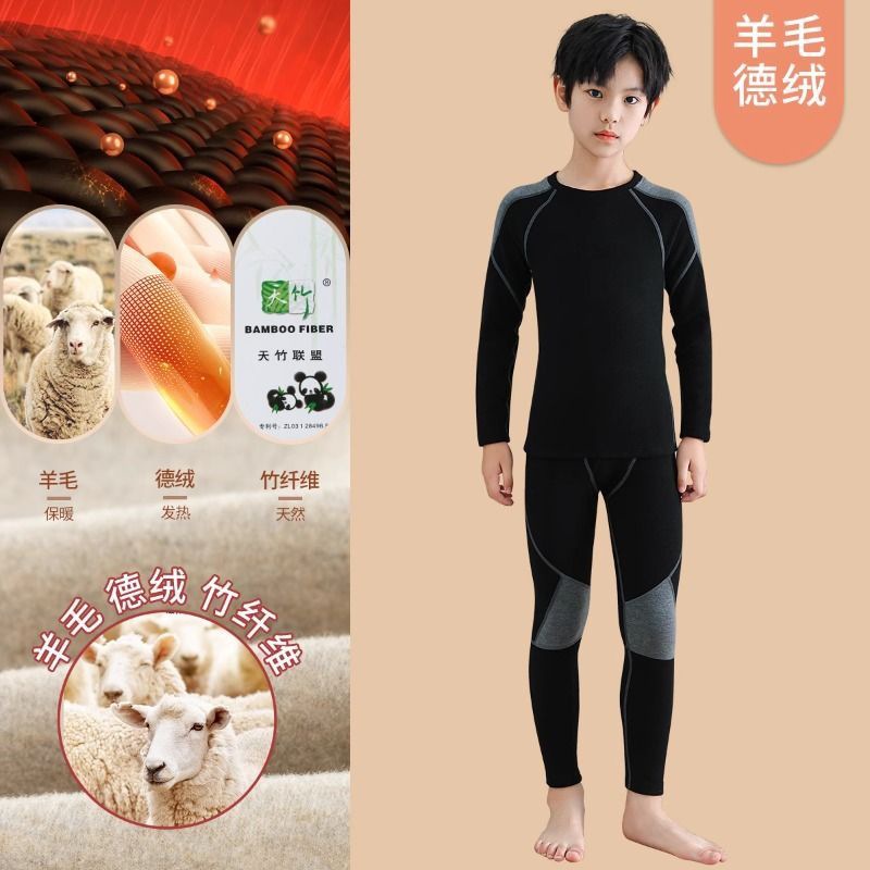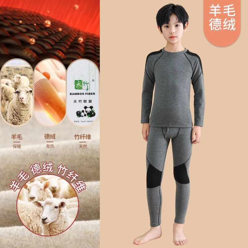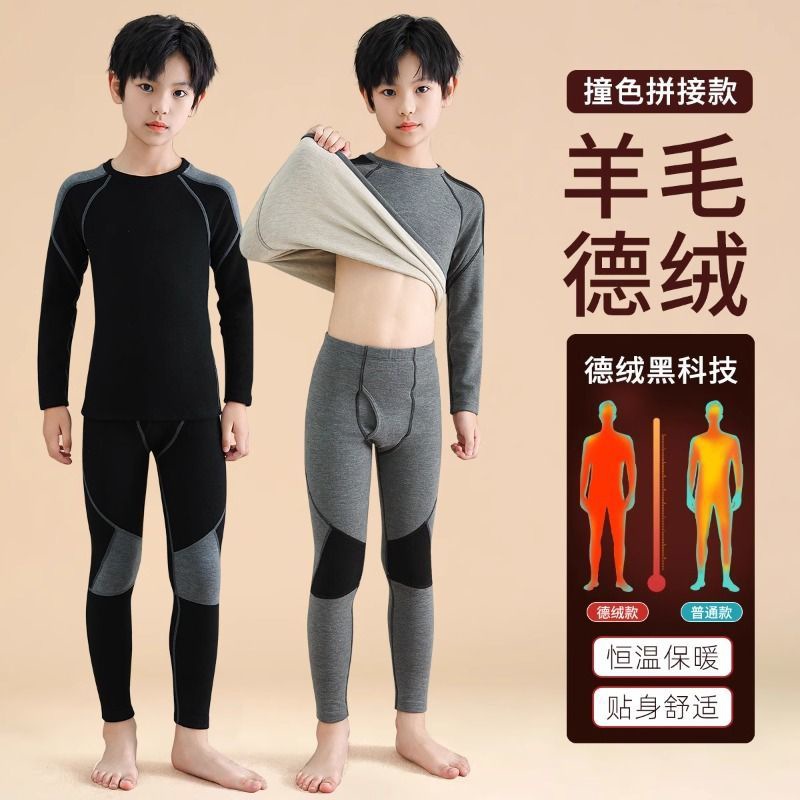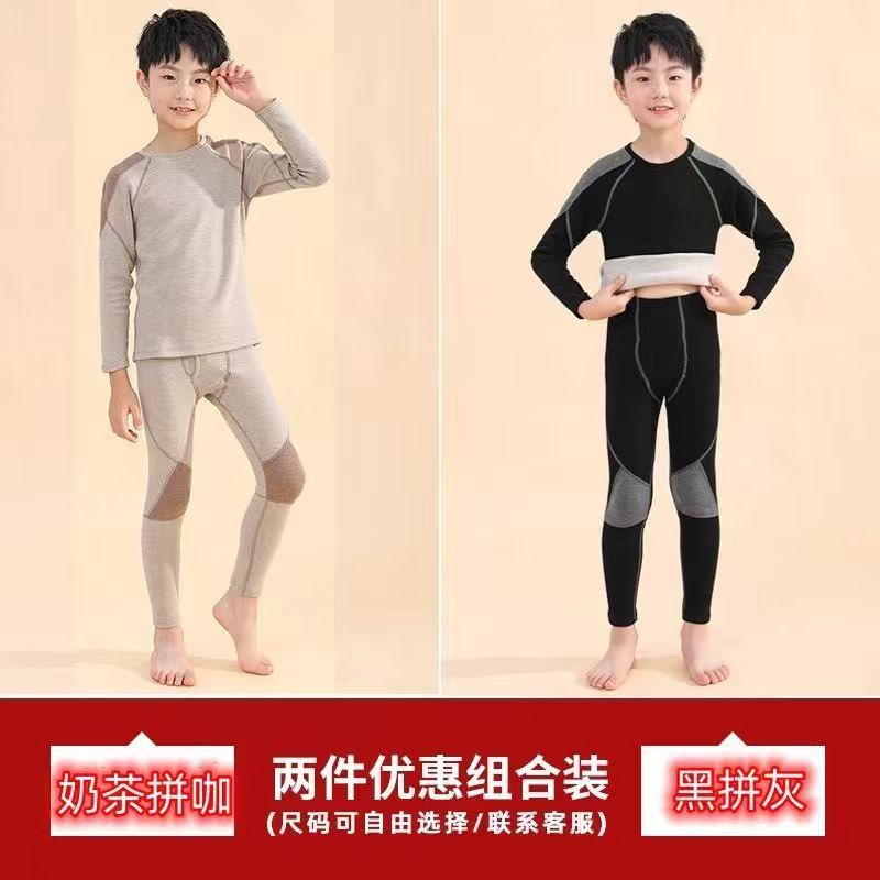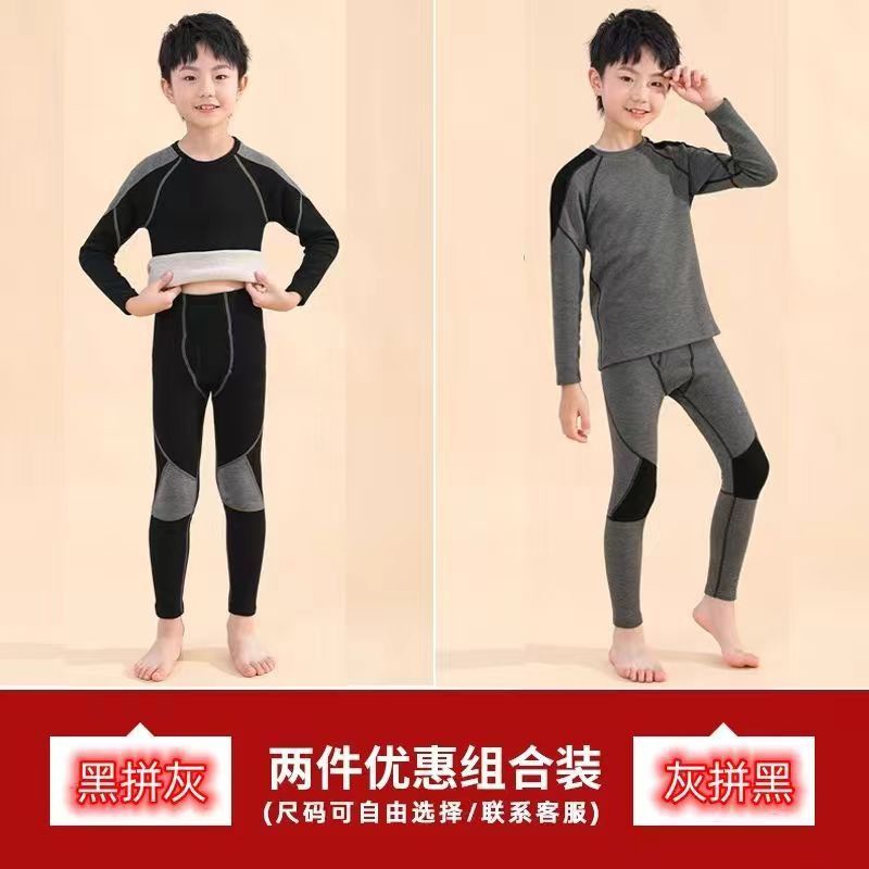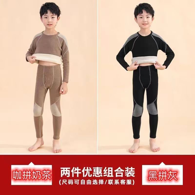 남학생 벨벳 속옷 발열 겨울 어린이 중 · 노인 어린이 기모 두꺼운 가을 옷과 바지 아기 따뜻한 세트
