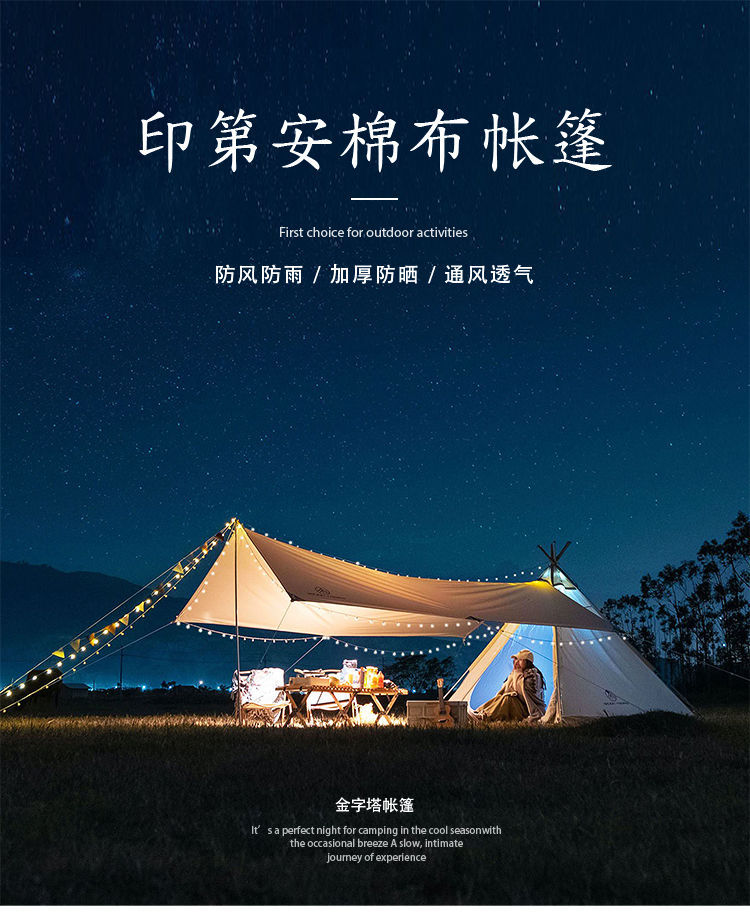인도 텐트 야외 캠핑 두꺼운 면 천 캠핑 선 스크린 비포장 빛 럭셔리 피라미드 옥스포드 천스토어 가기