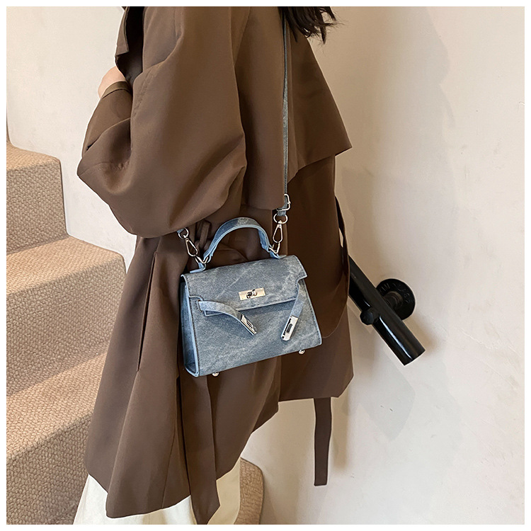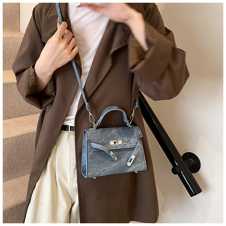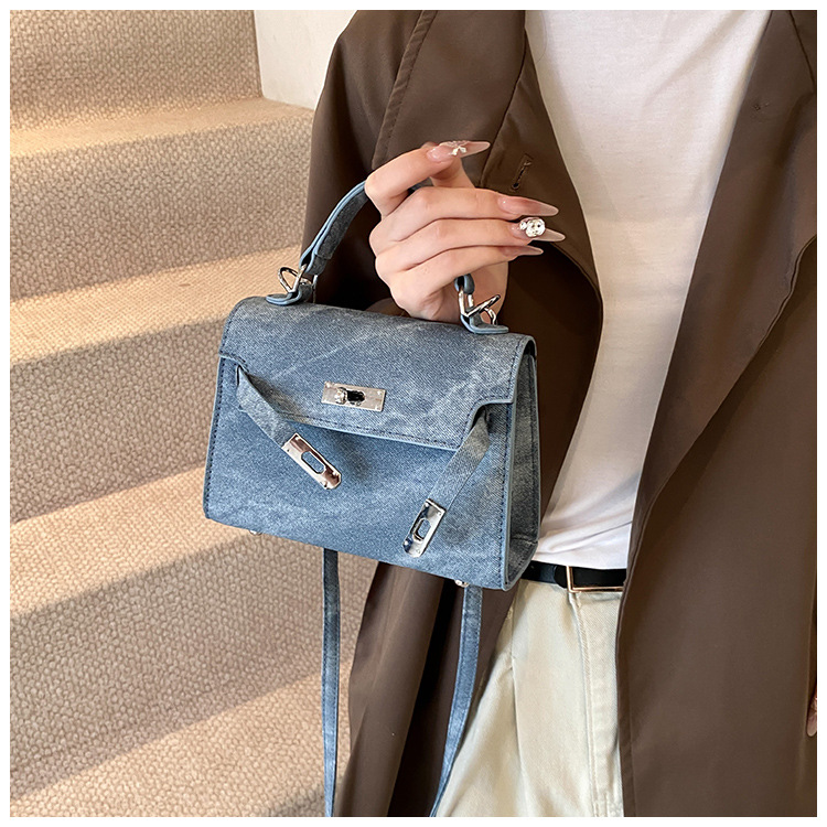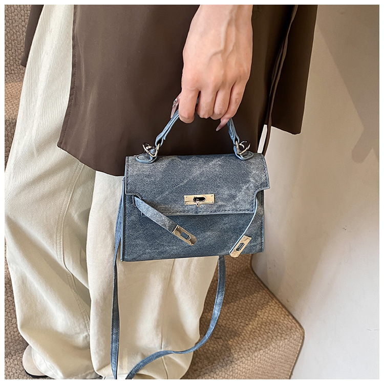 여성용 가방 패션 트렌드 데님 스타일 여성용 가방 작은 사각형 가방 2025 새로운 간단한 핸드백 켈리 가방 크로스 바디 백스토어 가기