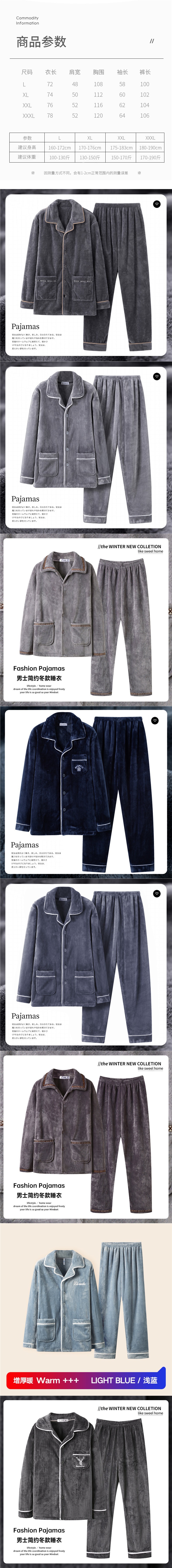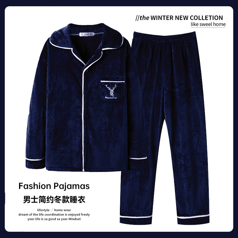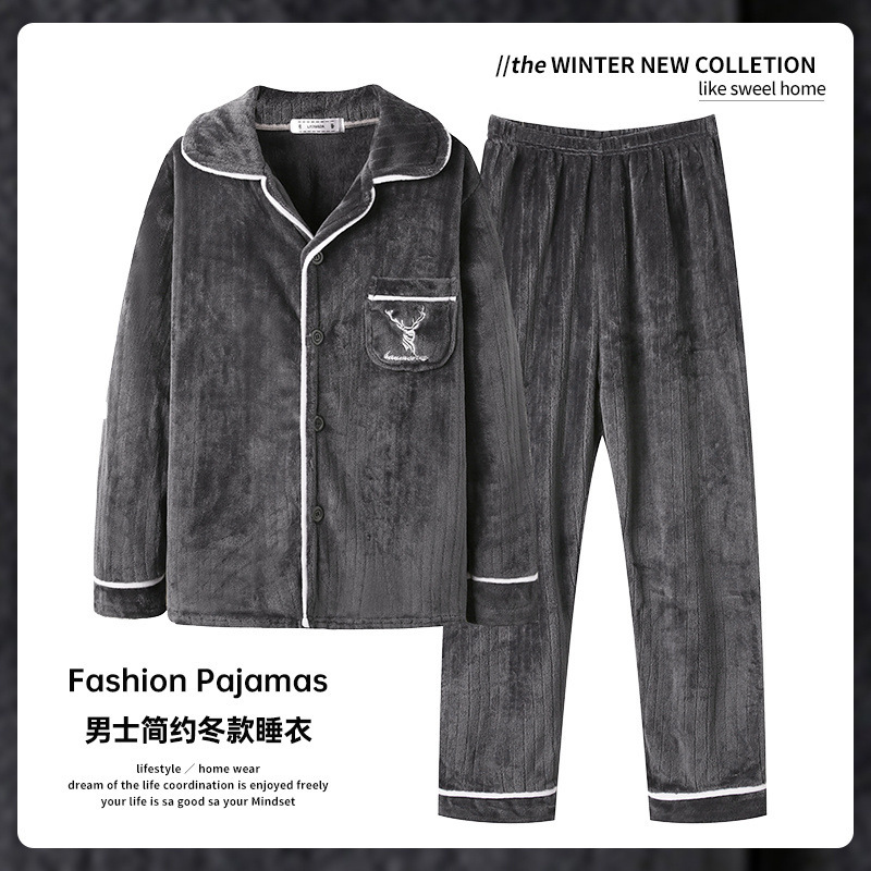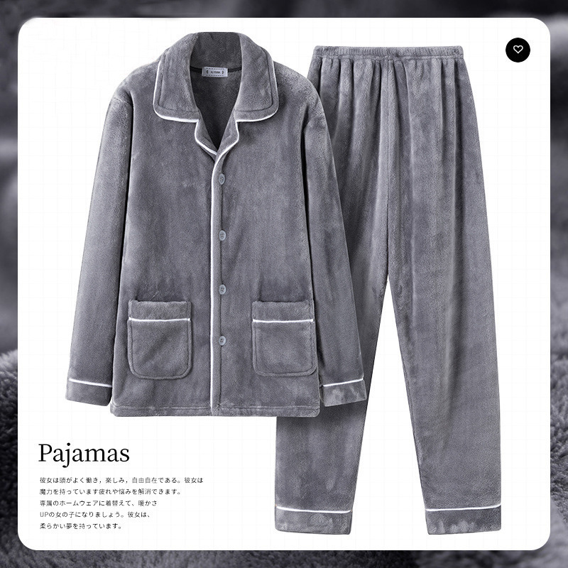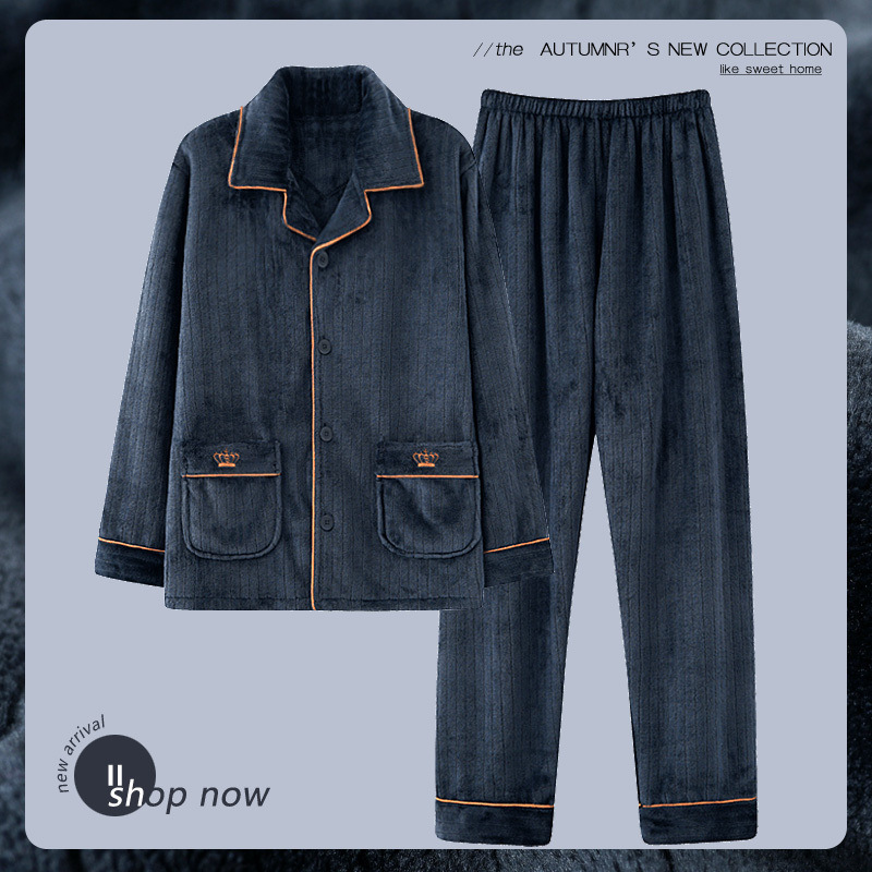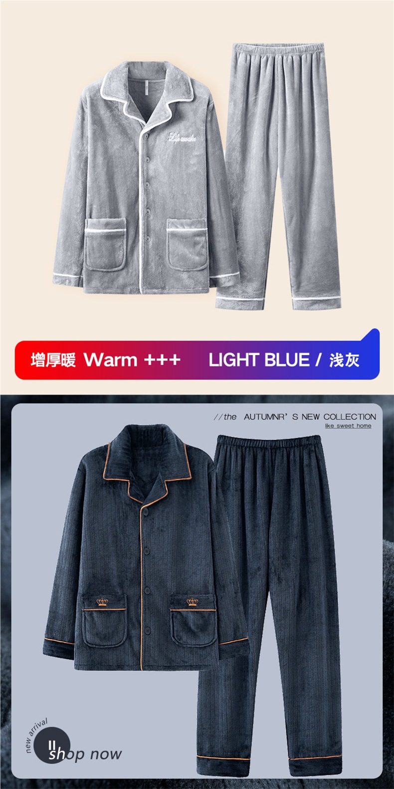 가을과 겨울 새로운 산호 양털 잠옷 남자의 두꺼운 기모 플란넬 긴 소매 따뜻한 집 옷 세트 겨울스토어 가기