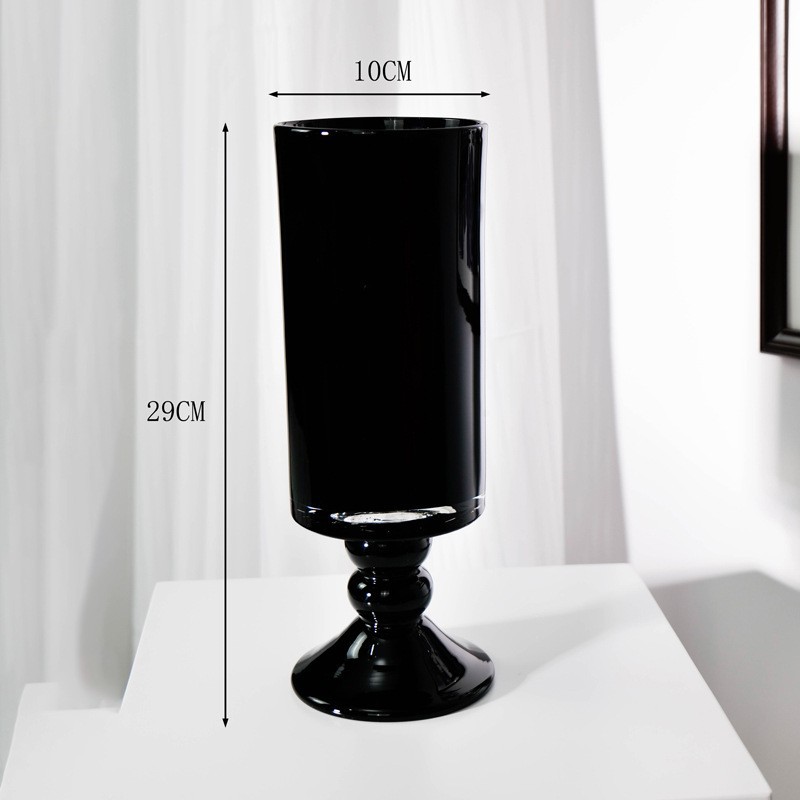 중간 고대 레트로 스타일 램프 블랙 컬러 유약 tall 꽃병 유리 꽃병 간단한 장식 모델 룸 꽃 장식품스토어 가기