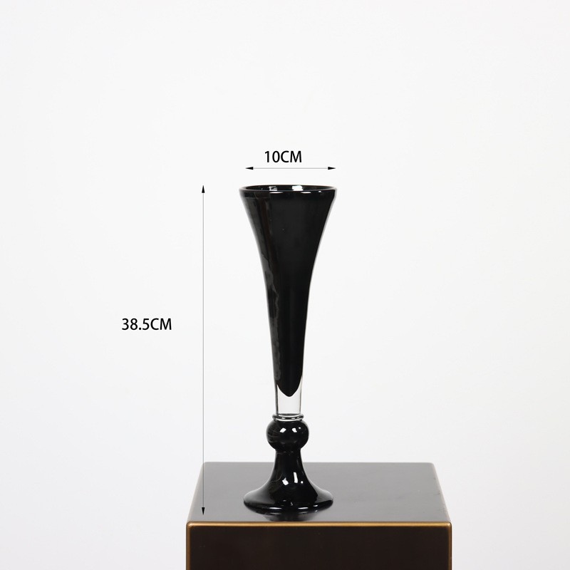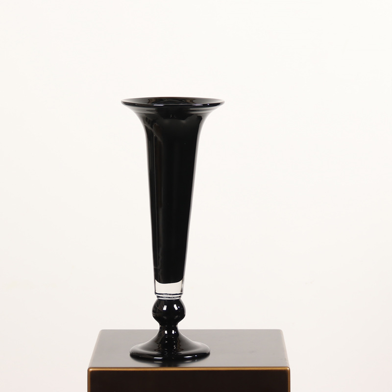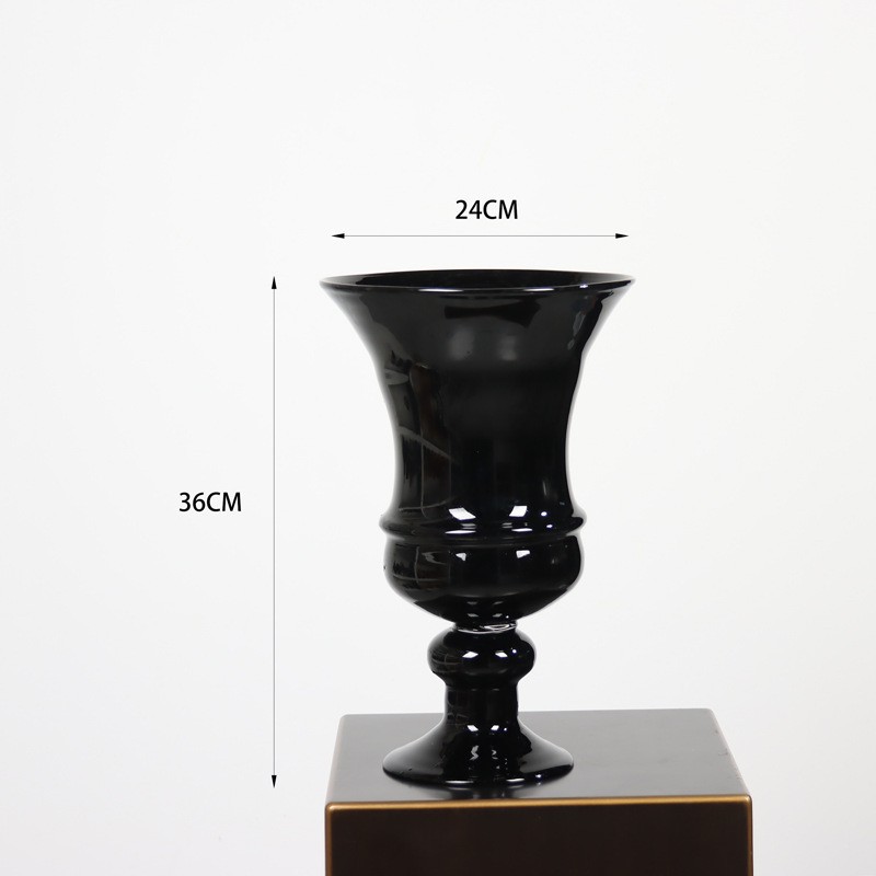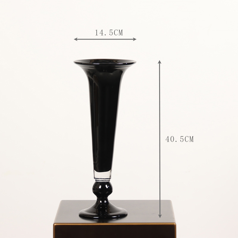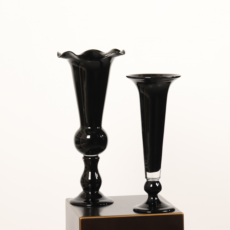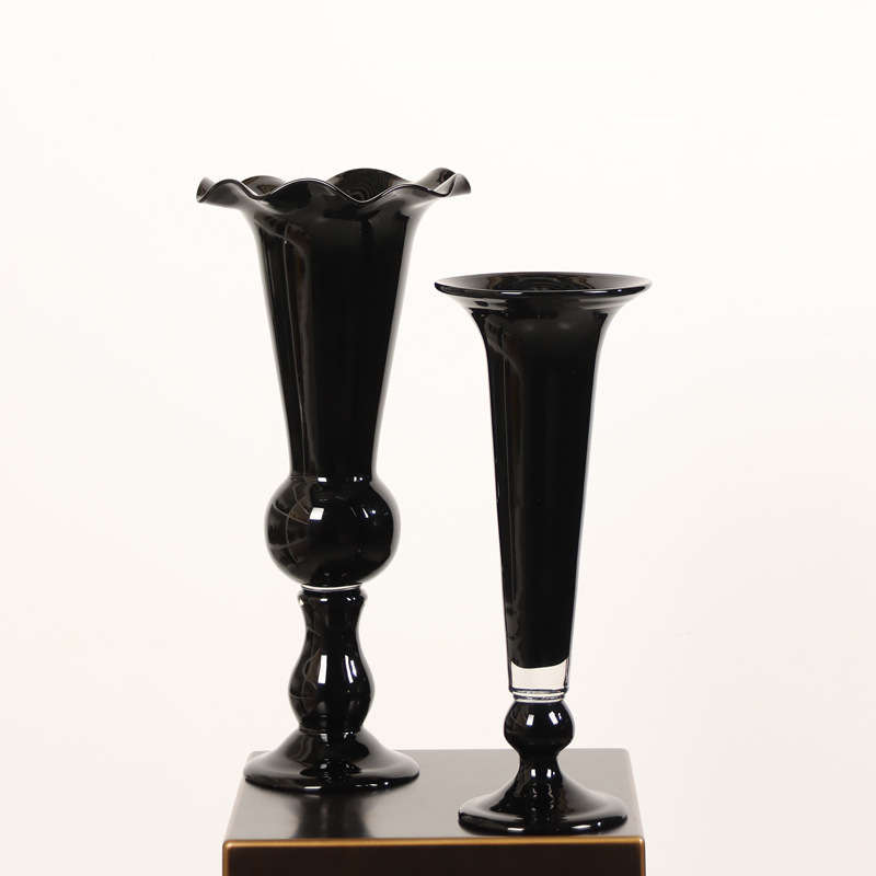 중간 고대 레트로 스타일 램프 블랙 컬러 유약 tall 꽃병 유리 꽃병 간단한 장식 모델 룸 꽃 장식품
