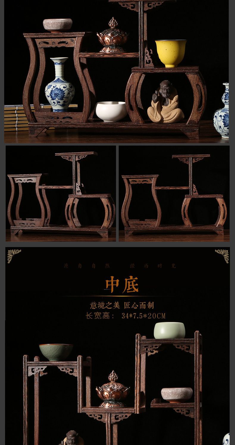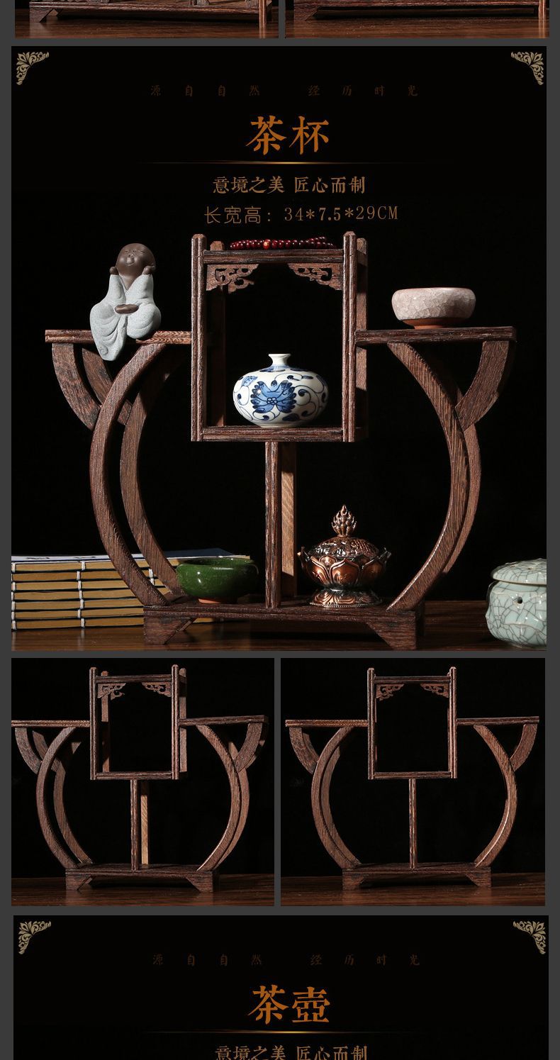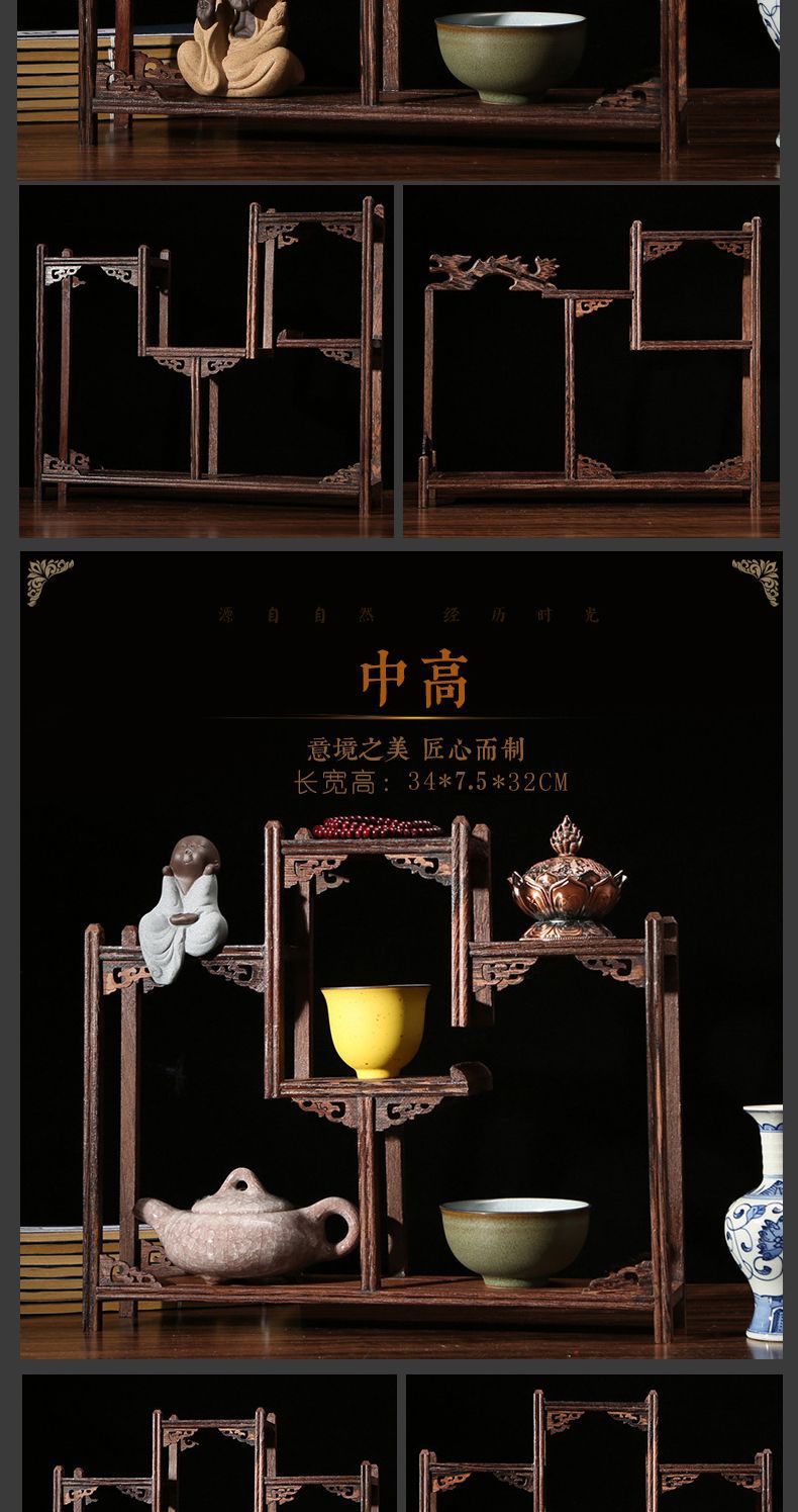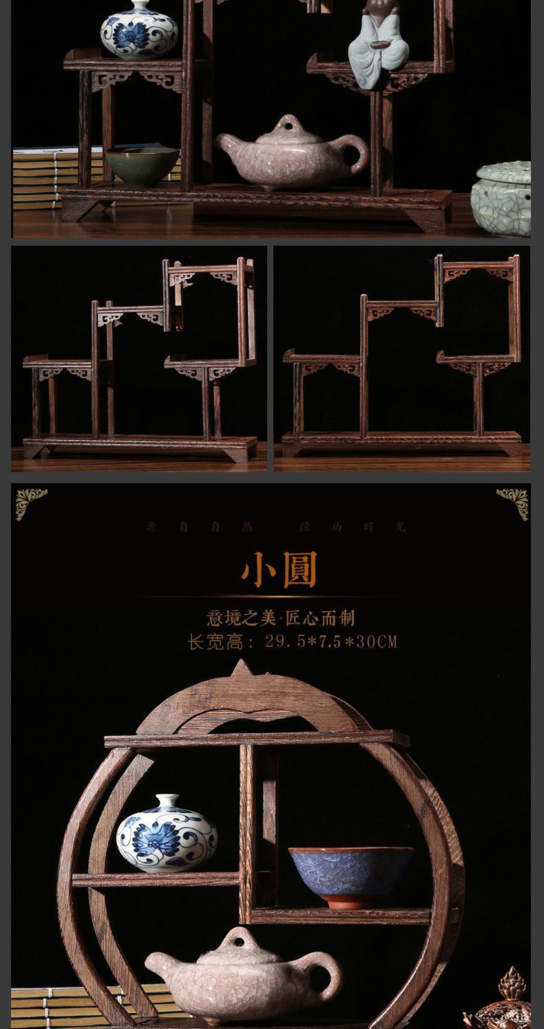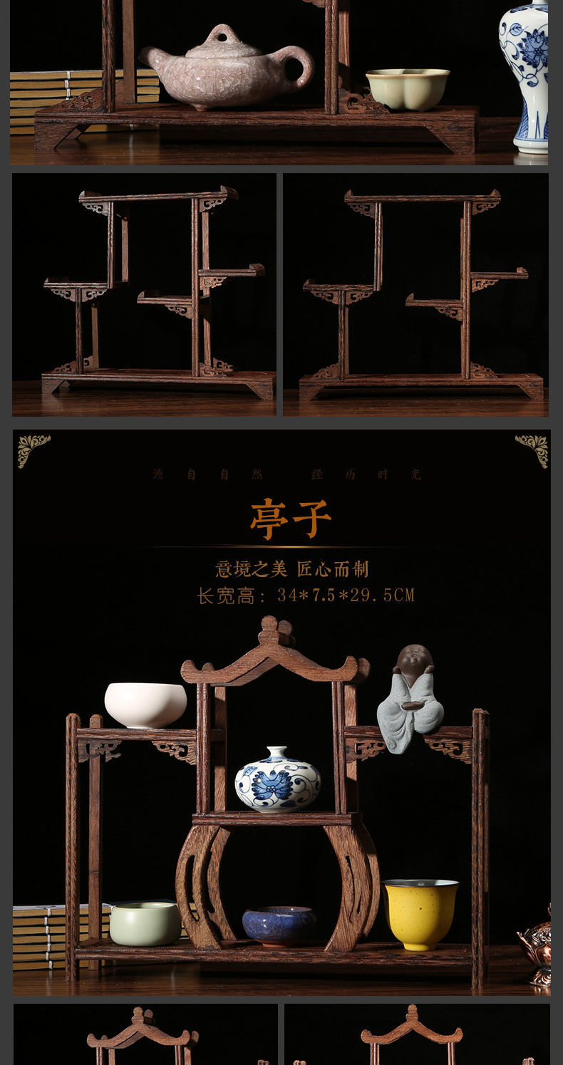 치킨 윙 나무 골동품 랙 중국 스타일의 작은 Duobao Pavilion 차 세트 랙 솔리드 우드 스토리지 랙 주전자 랙 장식품 랙 Zhan Ping Run