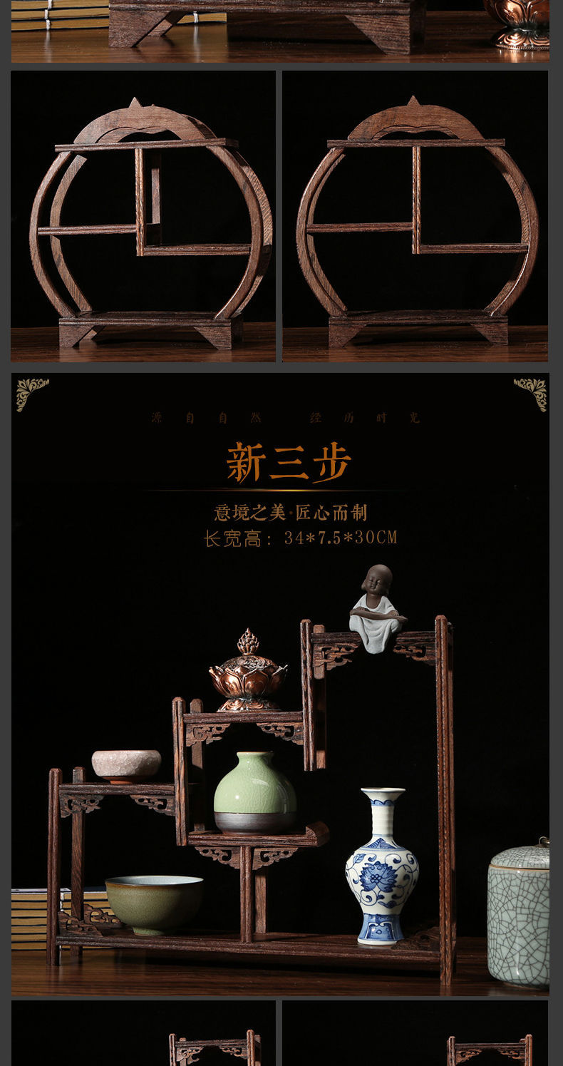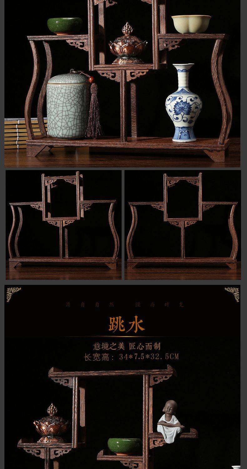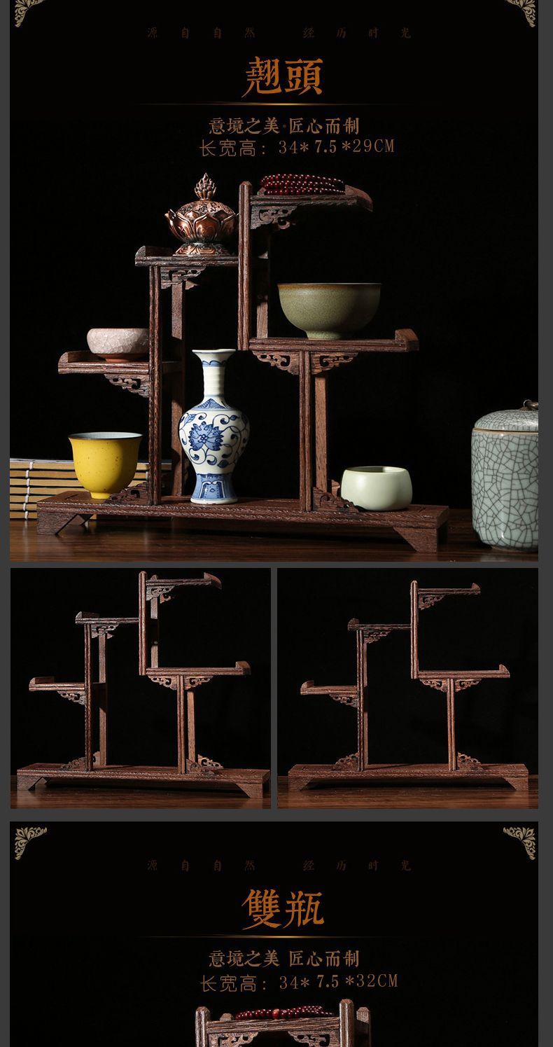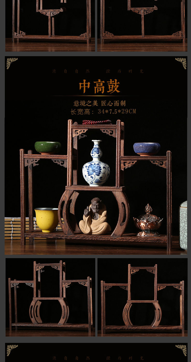 치킨 윙 나무 골동품 랙 중국 스타일의 작은 Duobao Pavilion 차 세트 랙 솔리드 우드 스토리지 랙 주전자 랙 장식품 랙 Zhan Ping Run